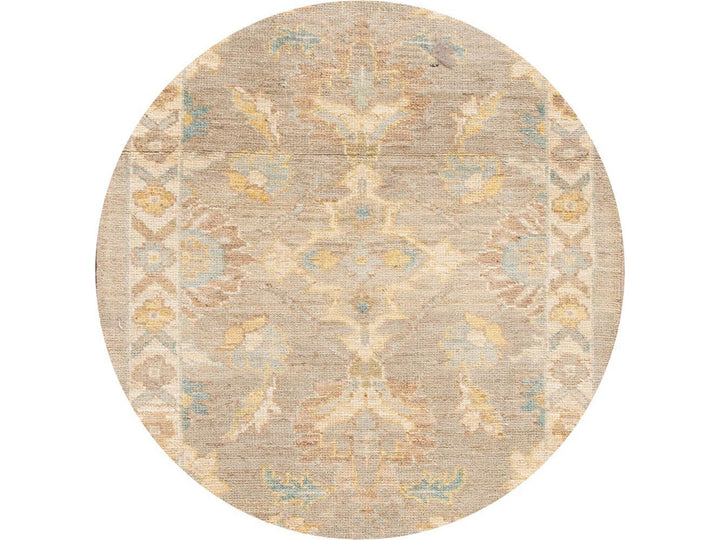 Beautiful contemporary Sultanabad runner rug, hand knotted wool with a tan field and multi-color accents all-over the design.