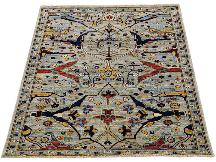 Light Gray Modern Bidjar Style Handmade Designed Wool Rug