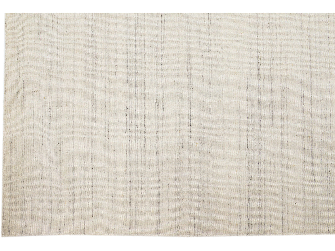 This Modern Groove Collection Rug with measure 6' 0'' x 9' 0'' and Ivory color has a unique handmade design crafted from wool and bamboo silk, with a solid design and hand loop construction. This rug provides a luxurious, soft feel and long-lasting durability. An ideal choice for a sophisticated and timeless finish.
