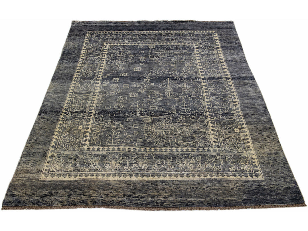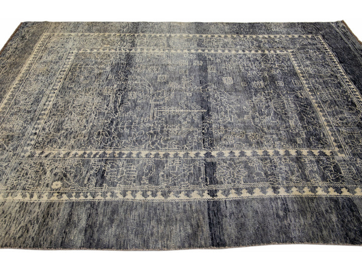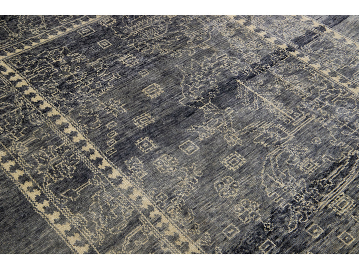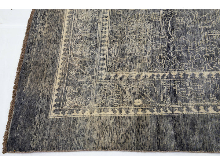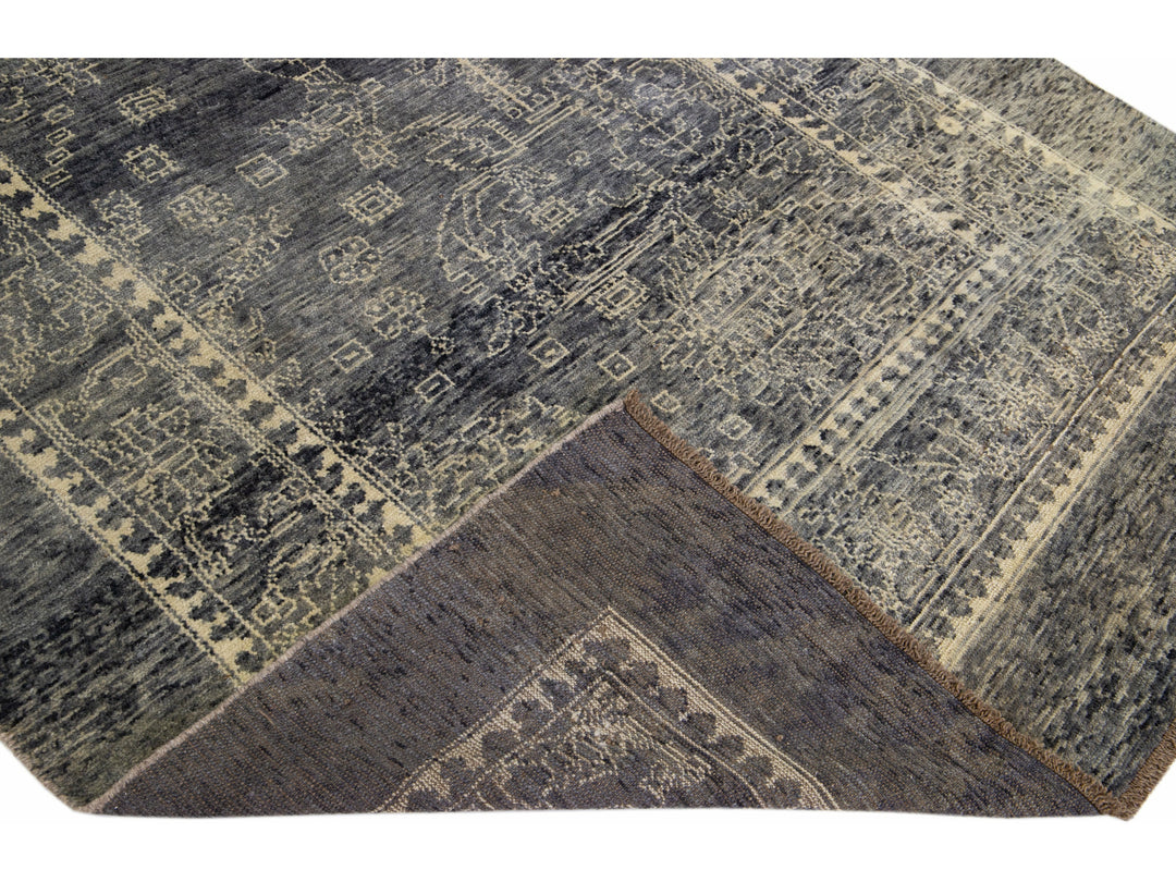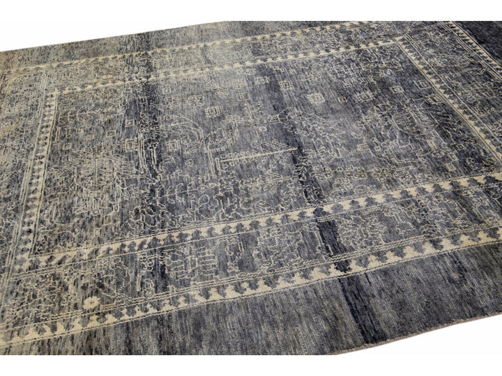 This Beautiful transitional handmade wool rug makes part of our Northwest Revival collection and features a gray color field and beige accents in a gorgeous all-over geometric design.