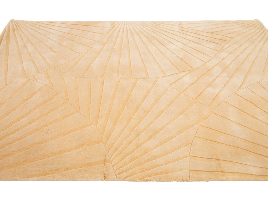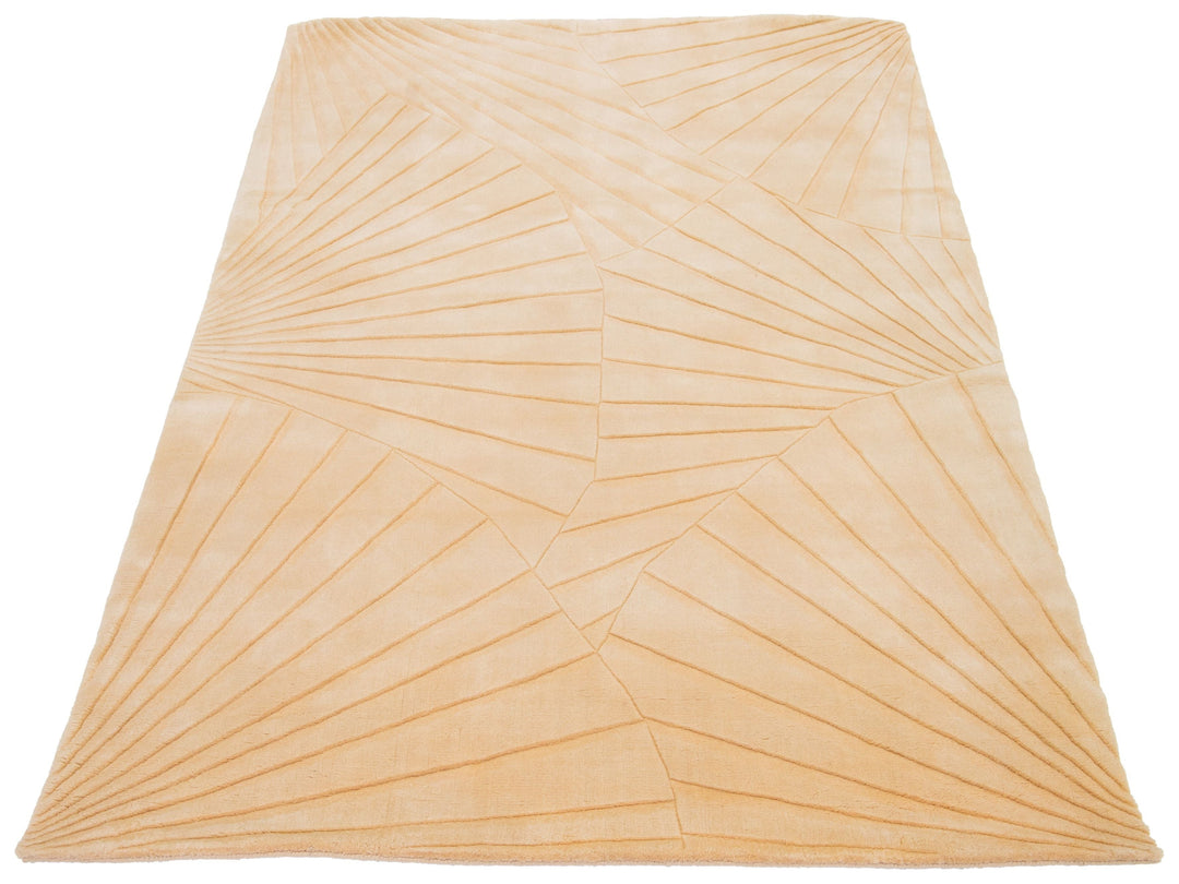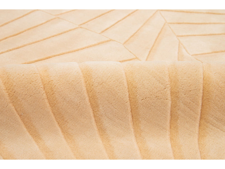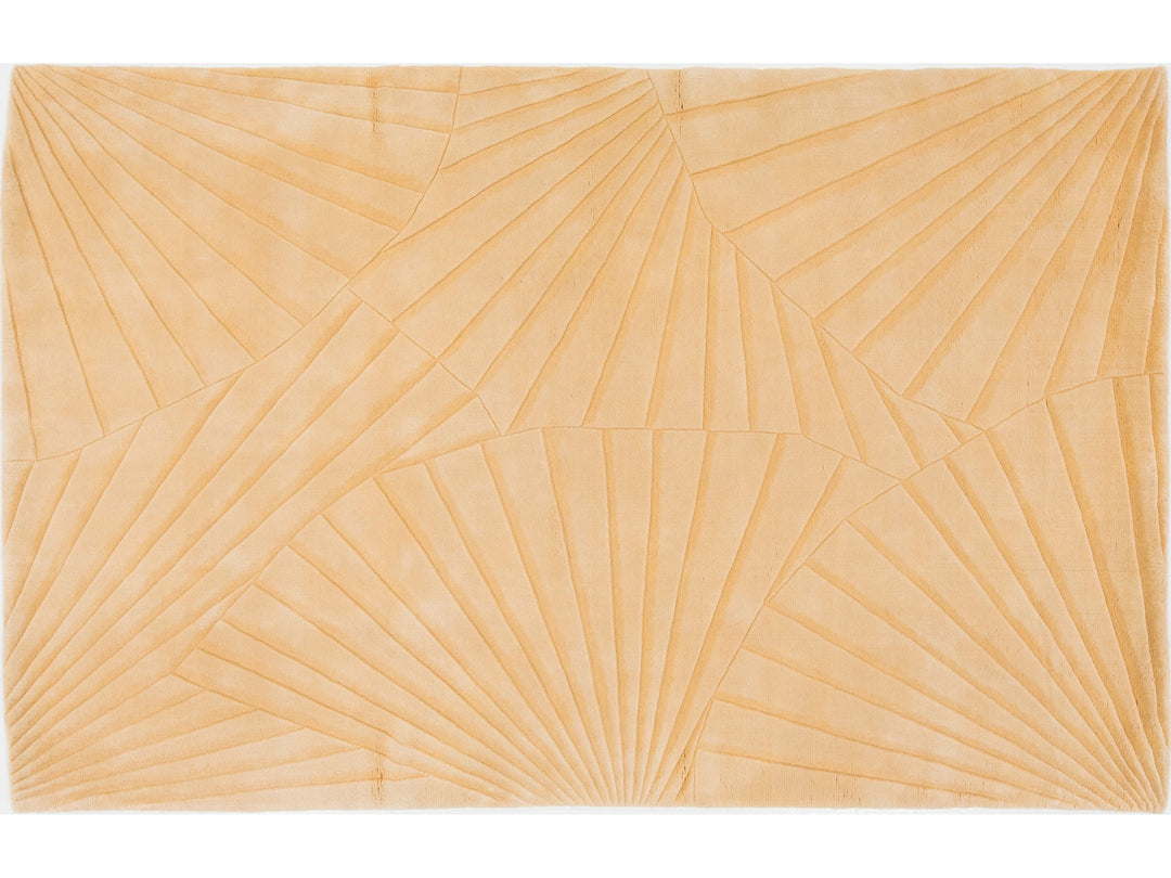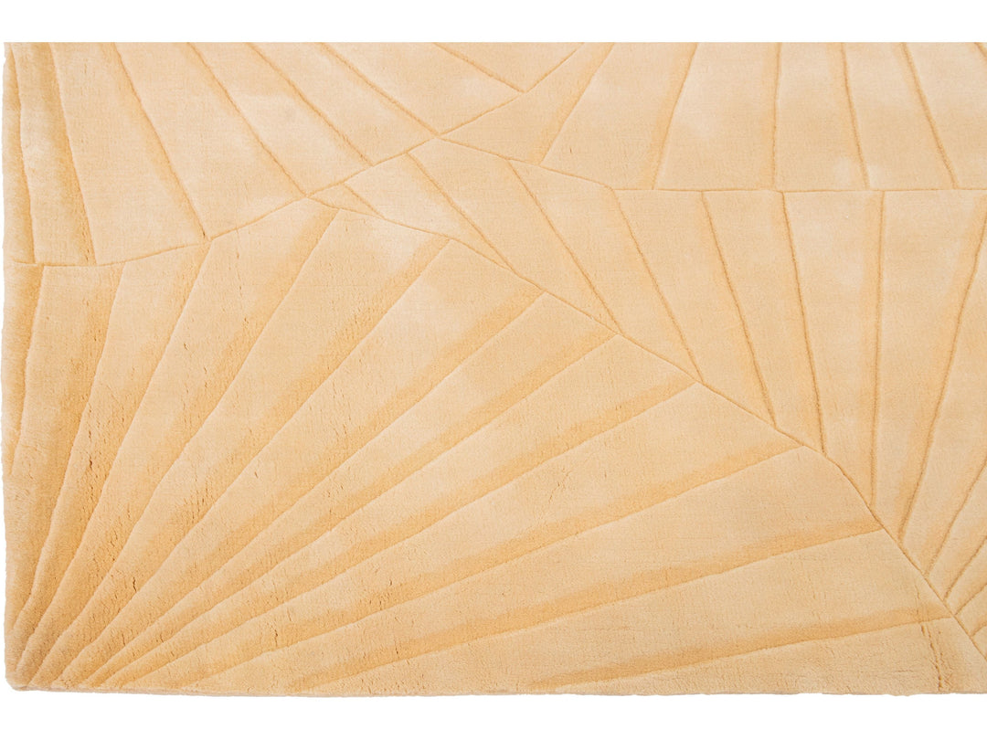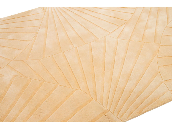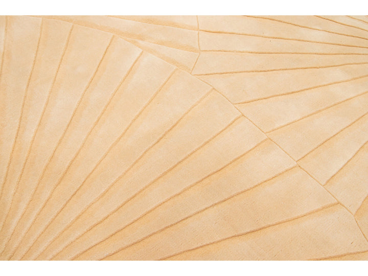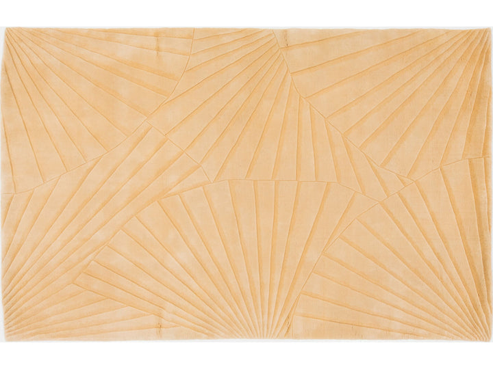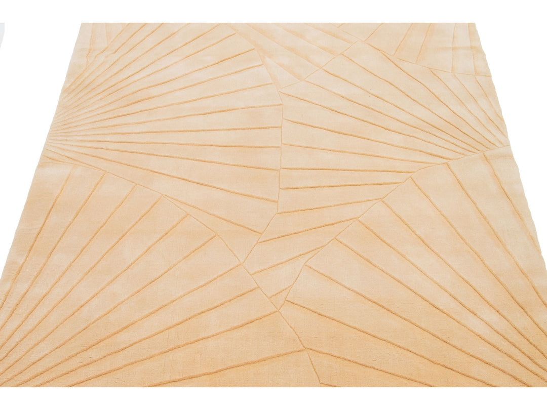 This modern rug is hand-loomed with a contemporary minimalist abstract pattern. It has a peach field. This rug measures 5' x 8'.