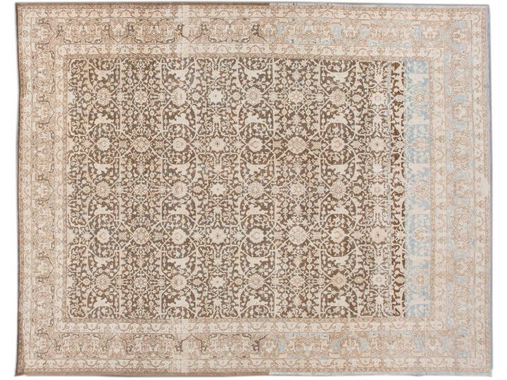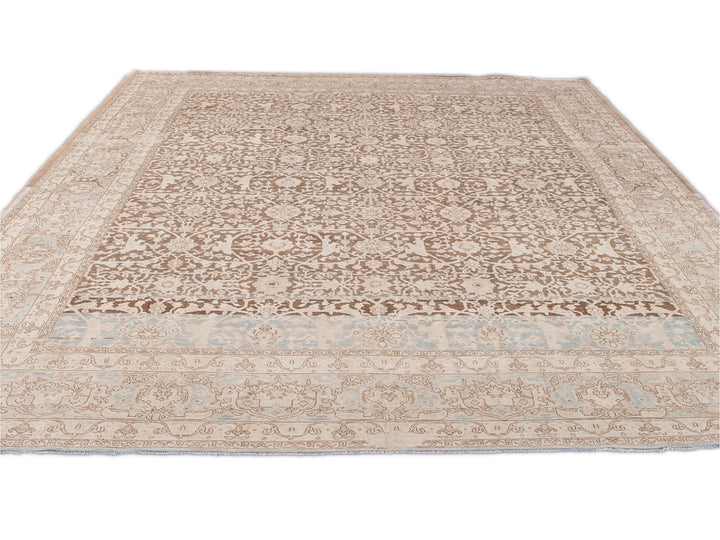 Antique Malayer Handmade Brown and Beige Floral Wool Rug