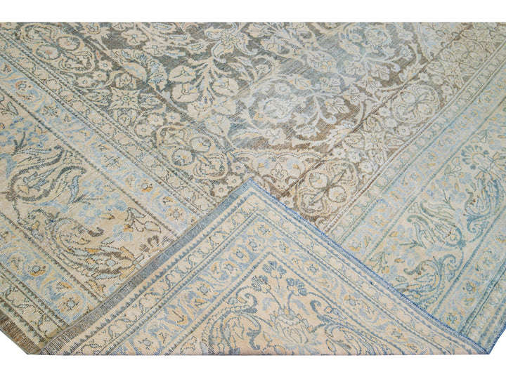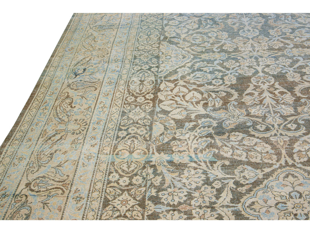 Beautiful antique Malayer hand-knotted wool rug with a blue field. This Malayer piece has a beige frame and accents in a gorgeous all-over floral pattern design.