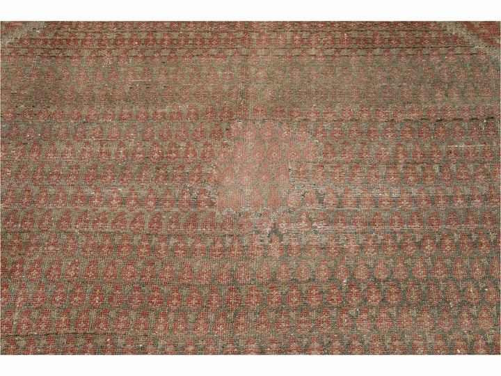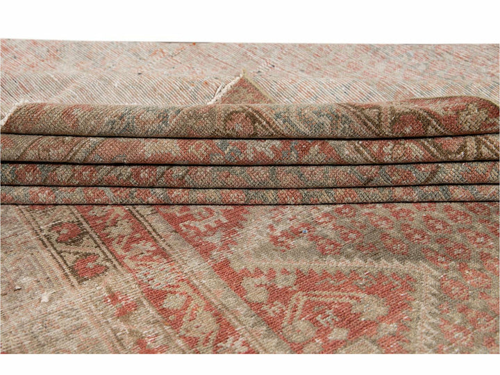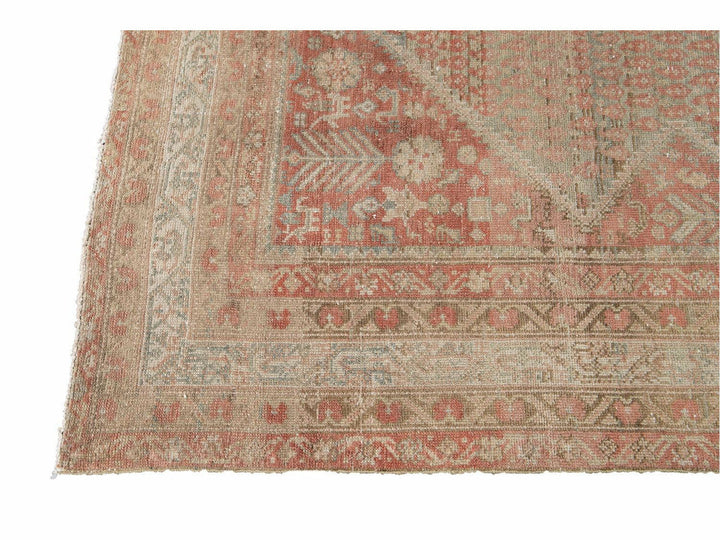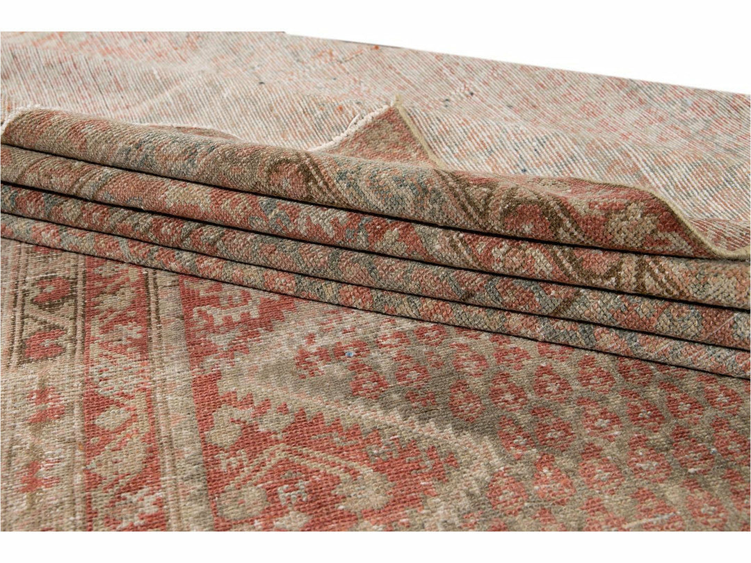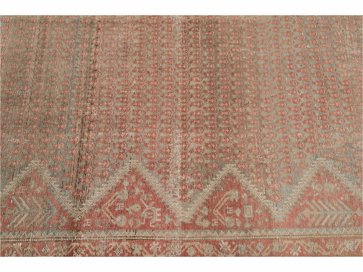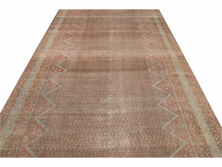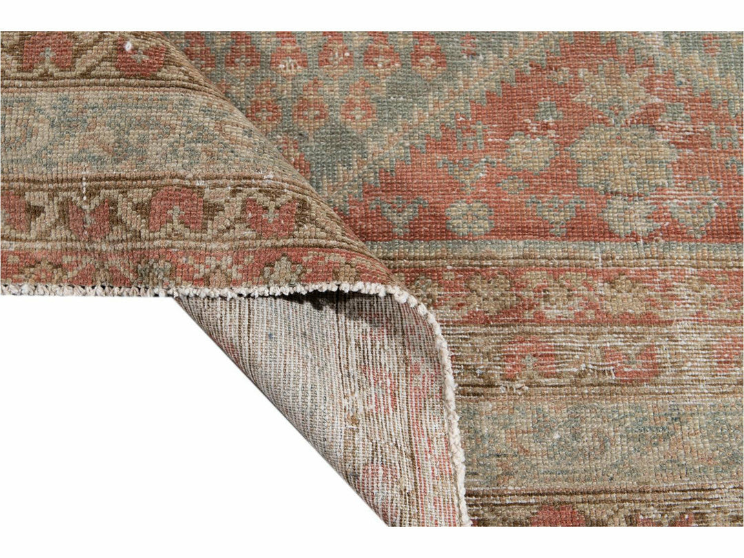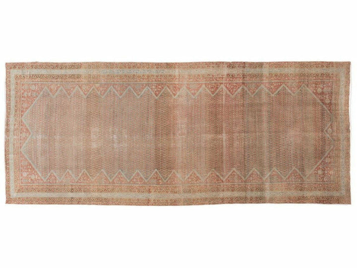 Beautiful Antique Malayer hand-knotted wool runner with a blue and peach field. This Malayer rug has accents of ivory and brown in an all-over gorgeous geometric design.