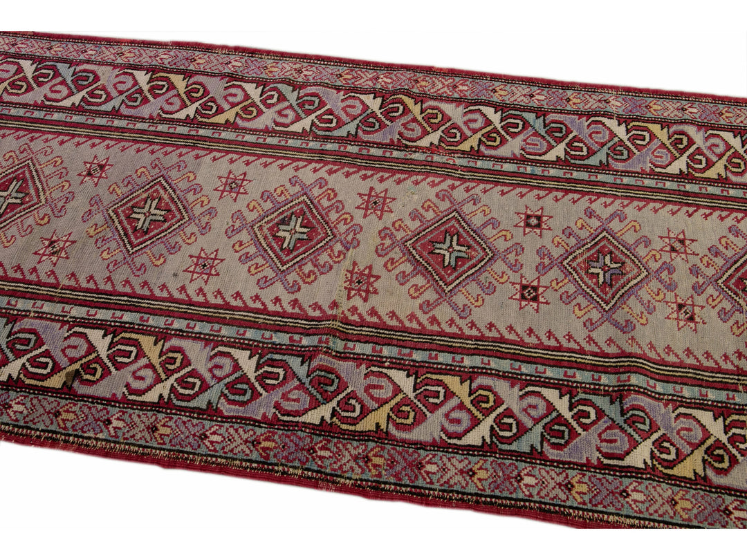 Antique Sivas Handmade Multicolor Geometric Wool Runner