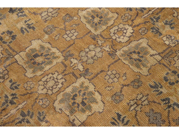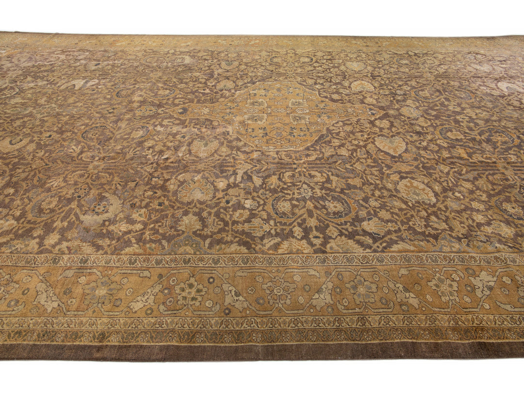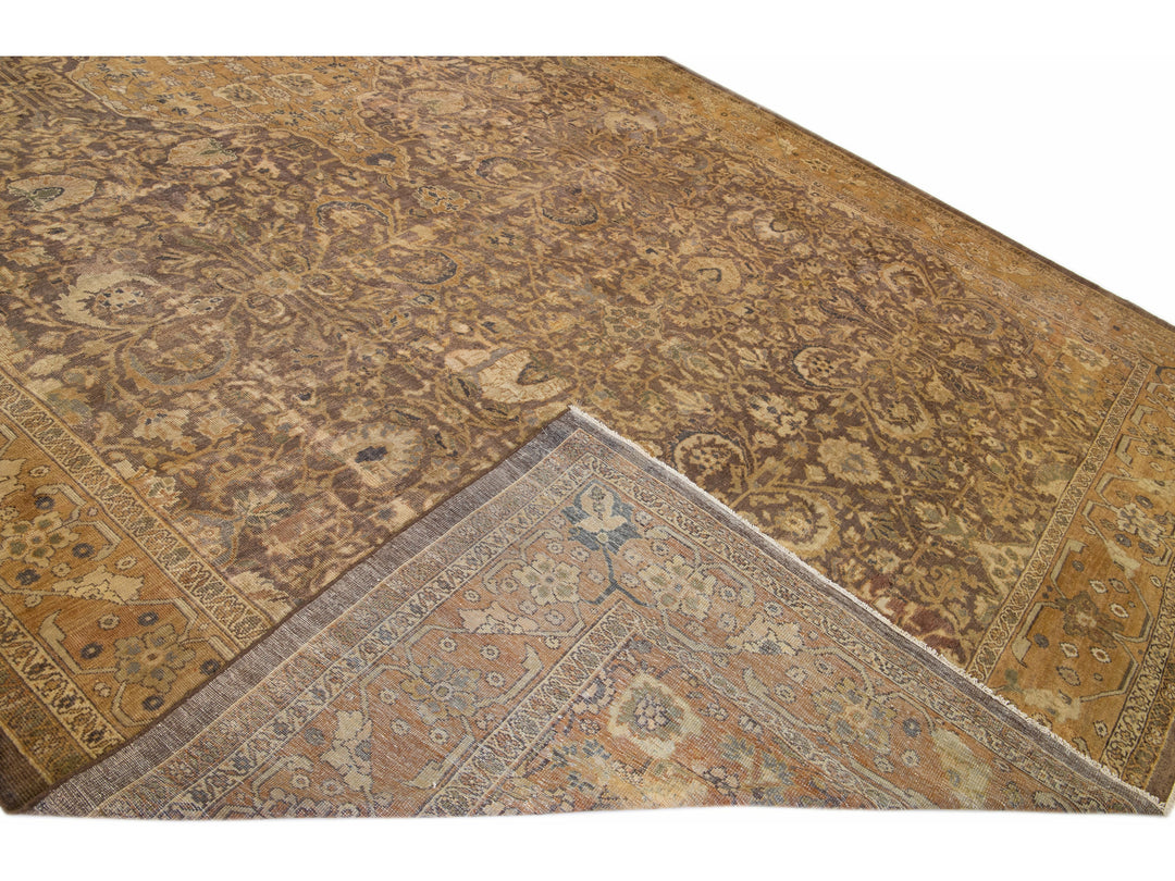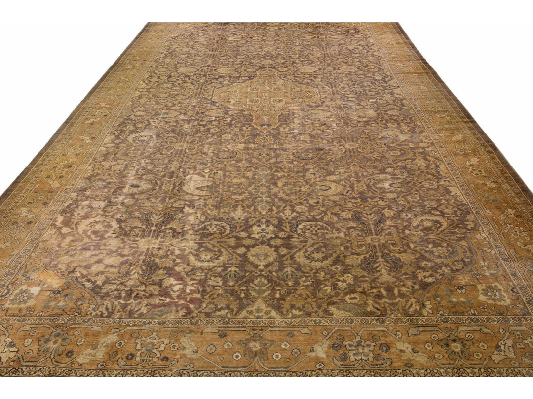 Antique Sultanabad Handmade Allover Motif Brown Wool Rug