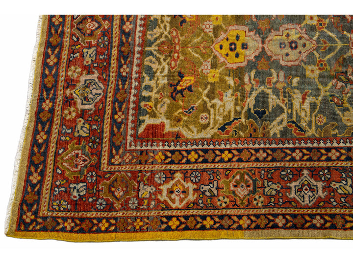 Antique Sultanabad Handmade Floral Pattern Gray Wool Rug