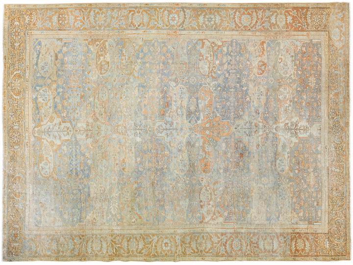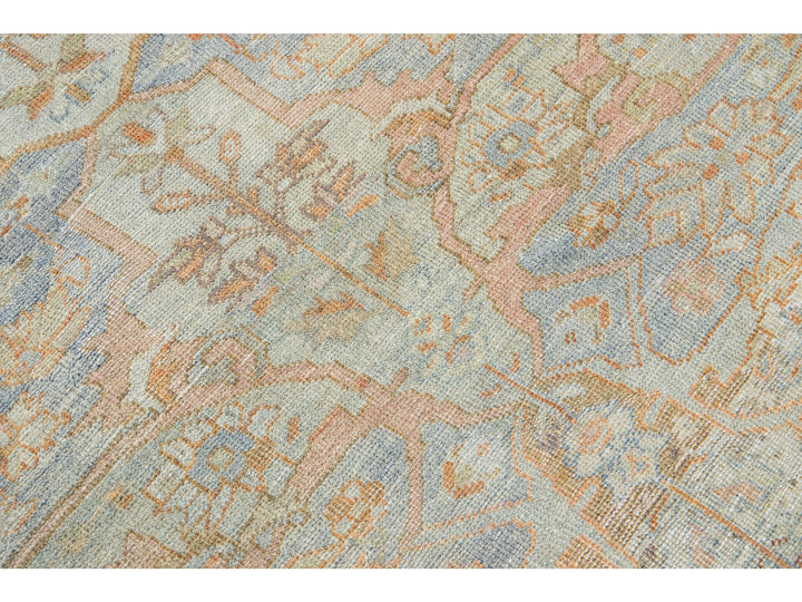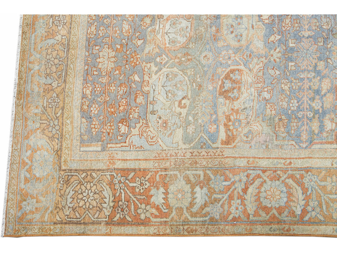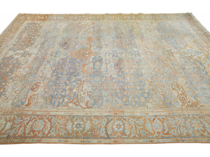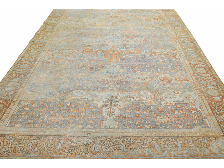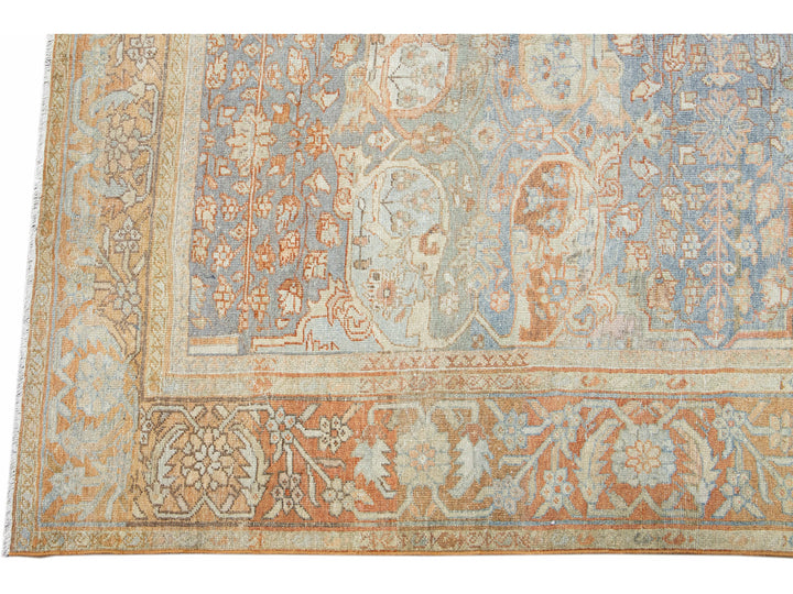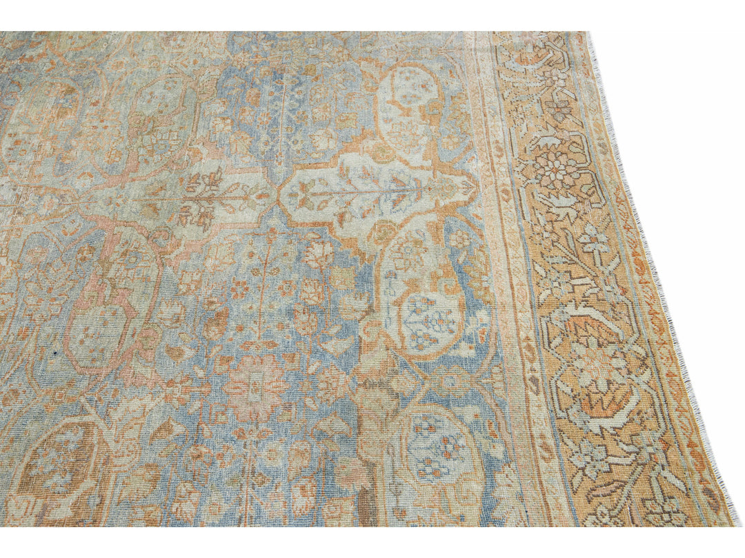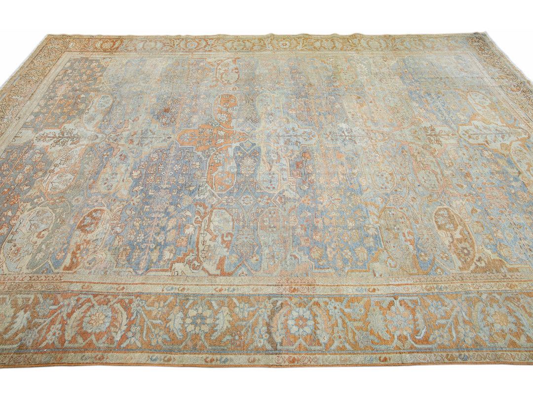Antique Sultanabad Handmade Allover Floral Light Blue Wool Rug