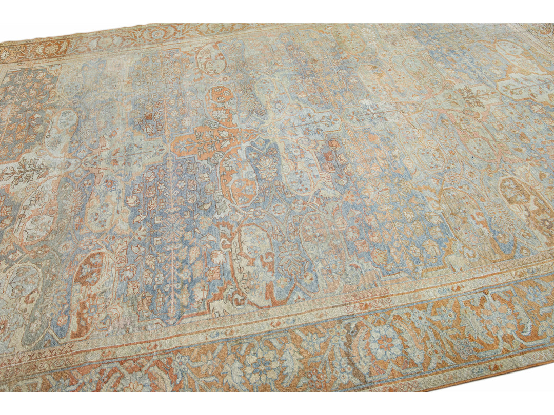 Beautiful antique Persian Sultanabad hand-knotted wool rug with a light blue field. This piece has a rusted designed frame and multicolor accents in a gorgeous all-over floral pattern design.