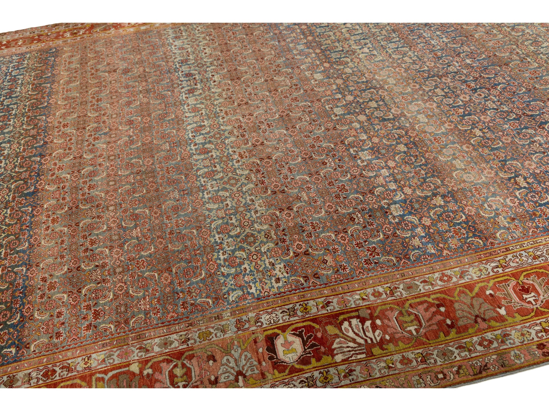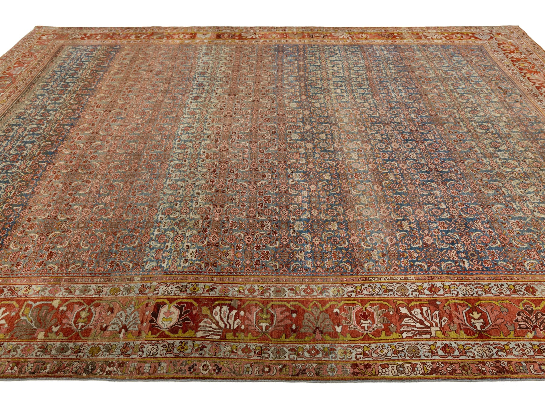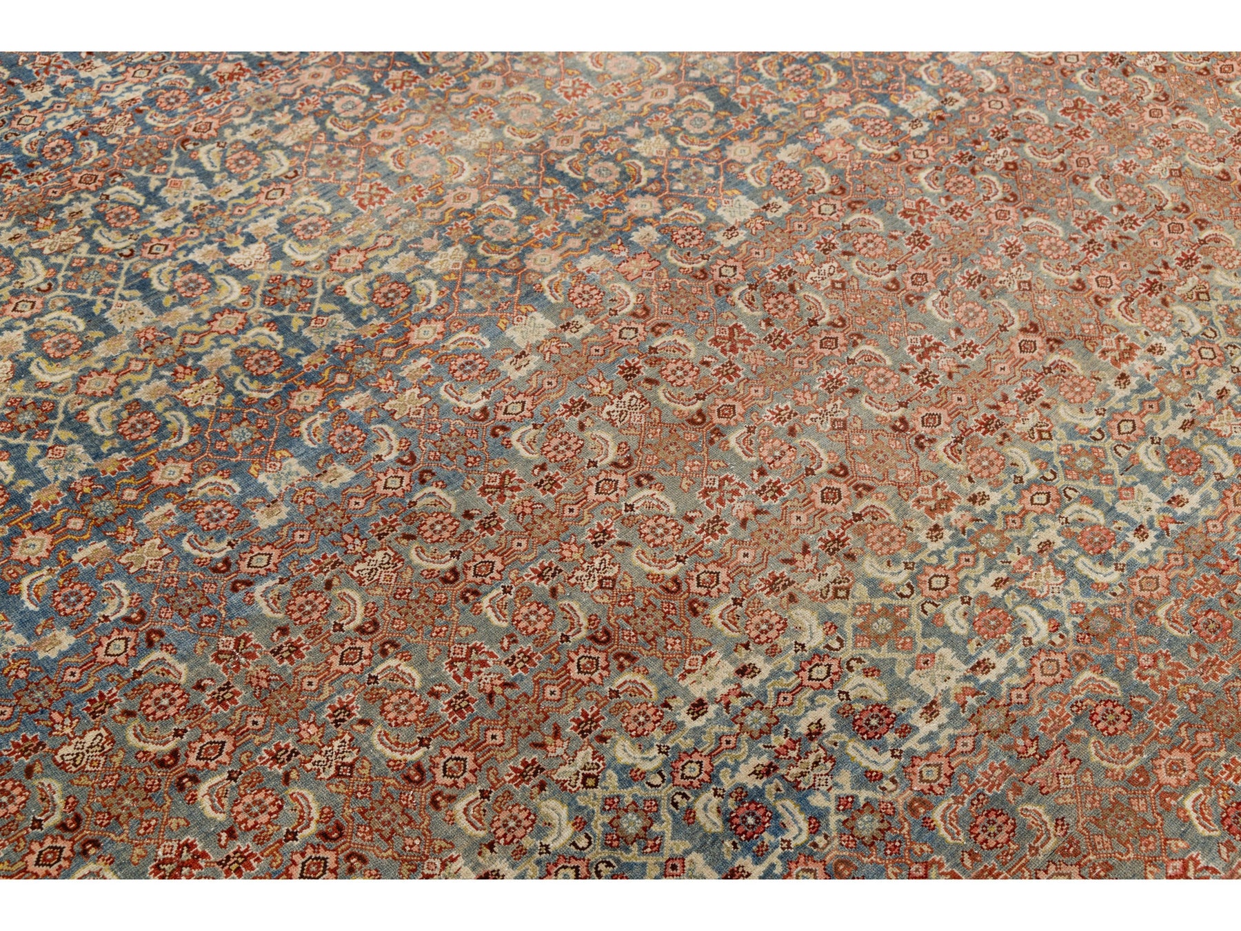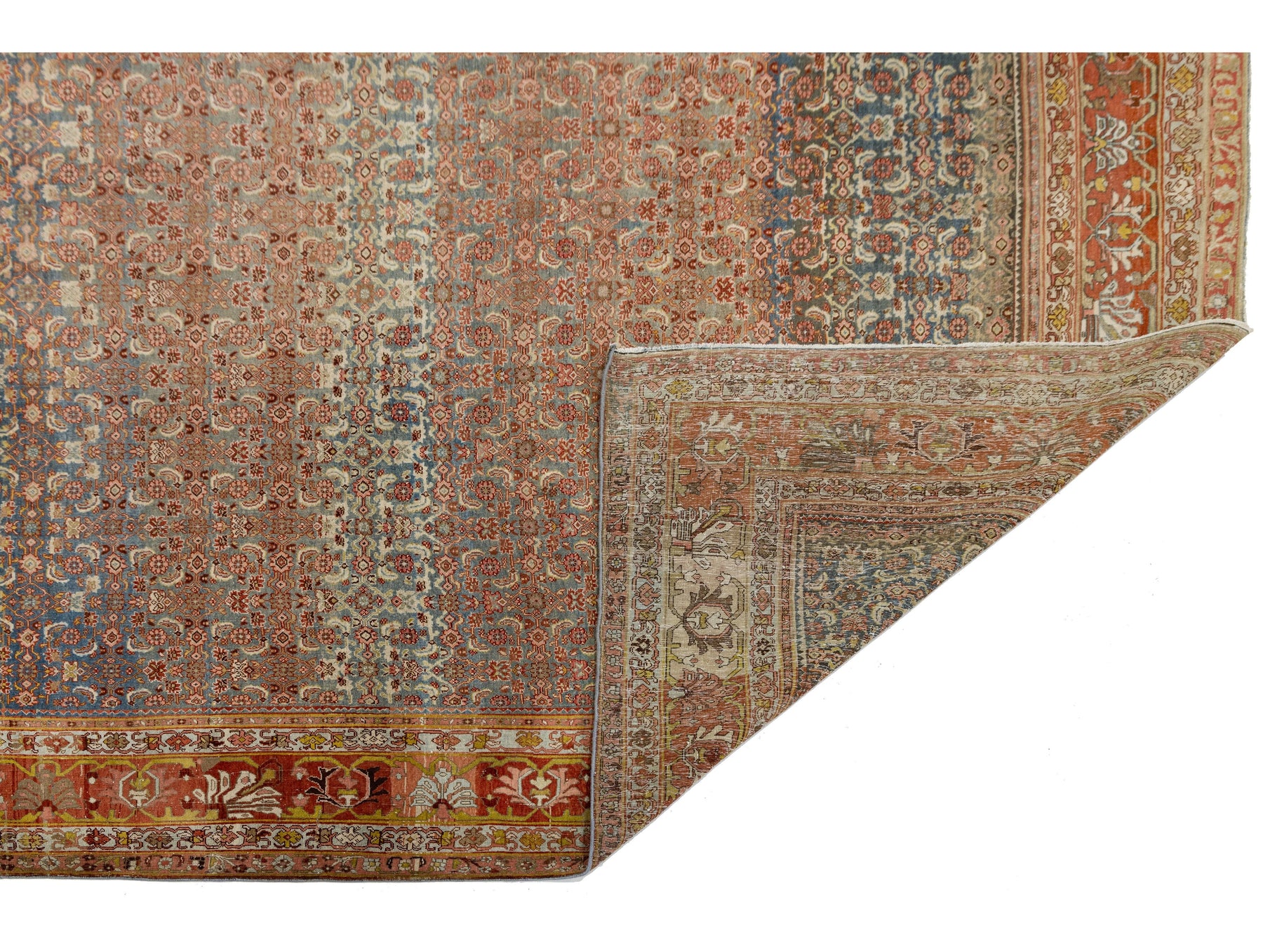 This exceptional Bidjar rug, hand-knotted in the early 1900s, exemplifies the renowned durability and intricate design of Persian weaving. Known as the “Iron Rug of Persia,” Bidjars are celebrated for their dense weave, rich color saturation, and elegant floral and geometric motifs. the symmetrical field with ornate borders in deep reds, blues, and earthy tones. This rug measures 9'2" x 12'3".