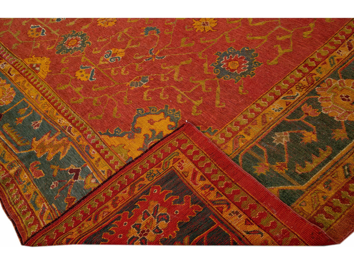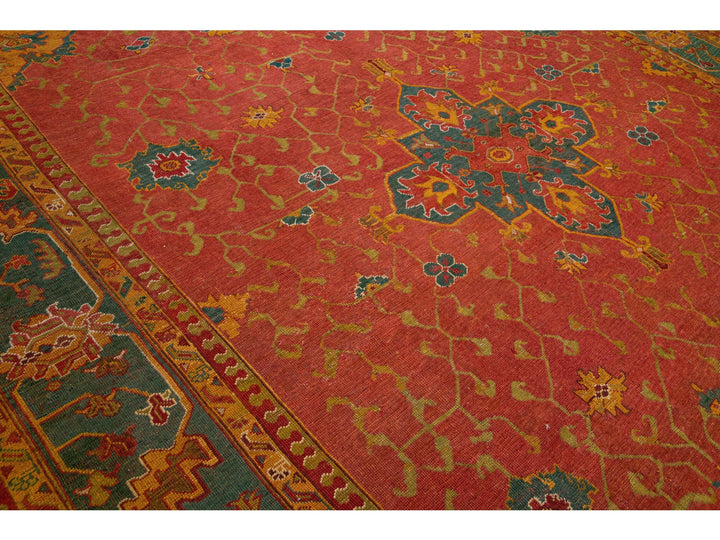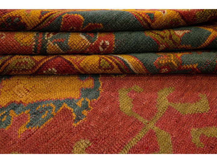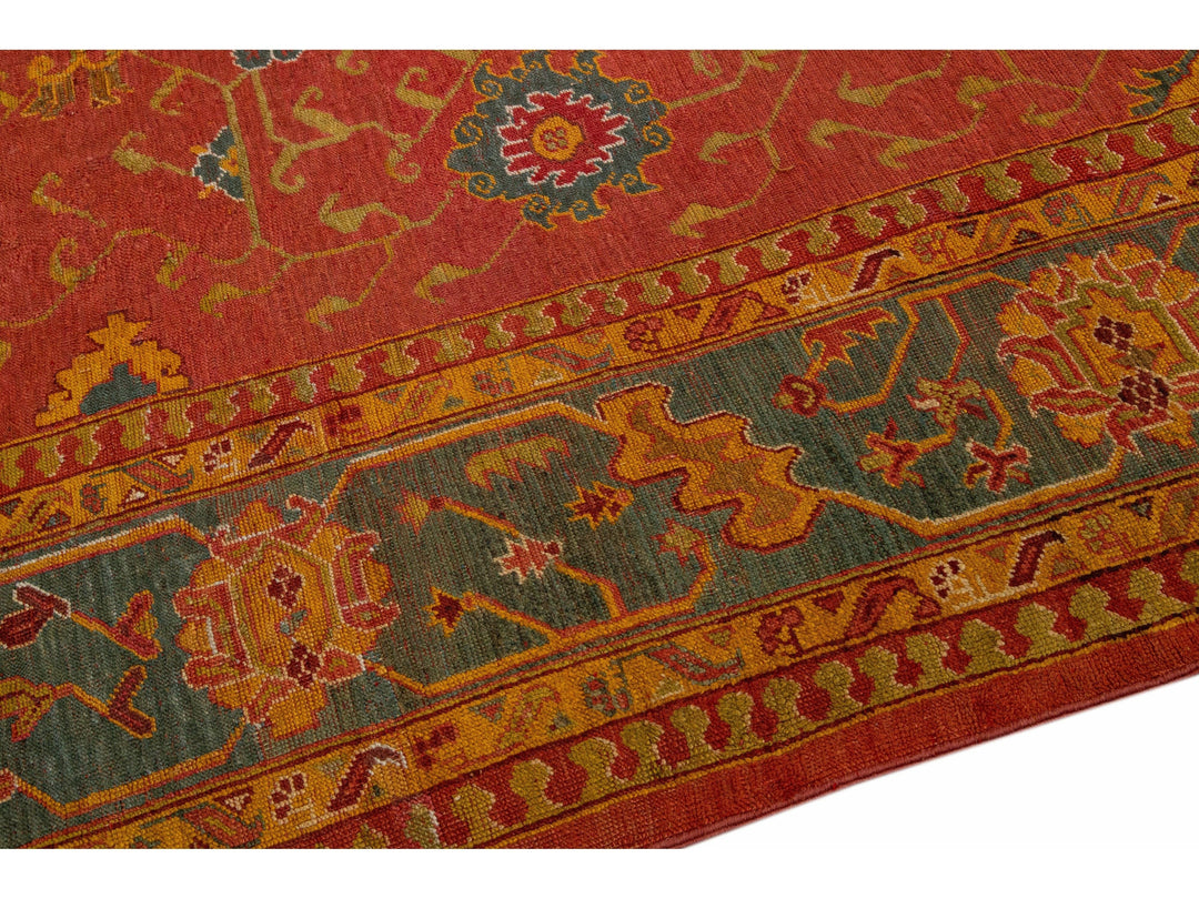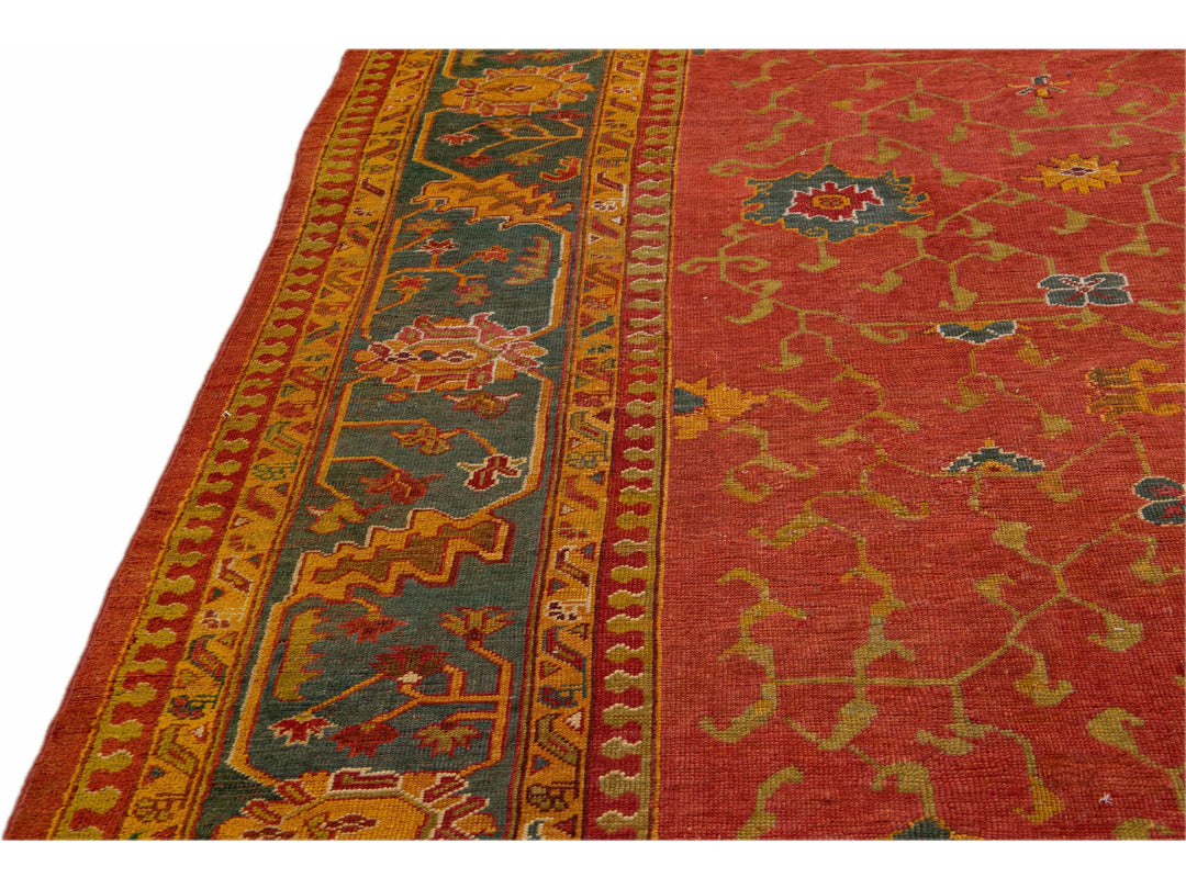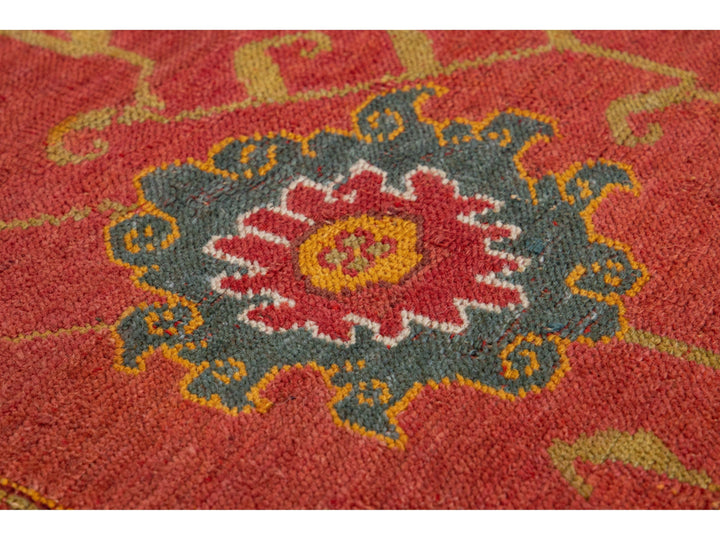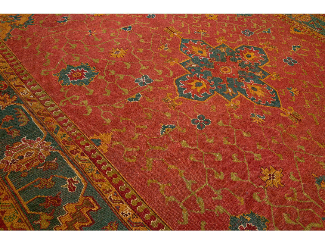 Red Antique Turkish Oushak Handmade Allover Designed Wool Rug