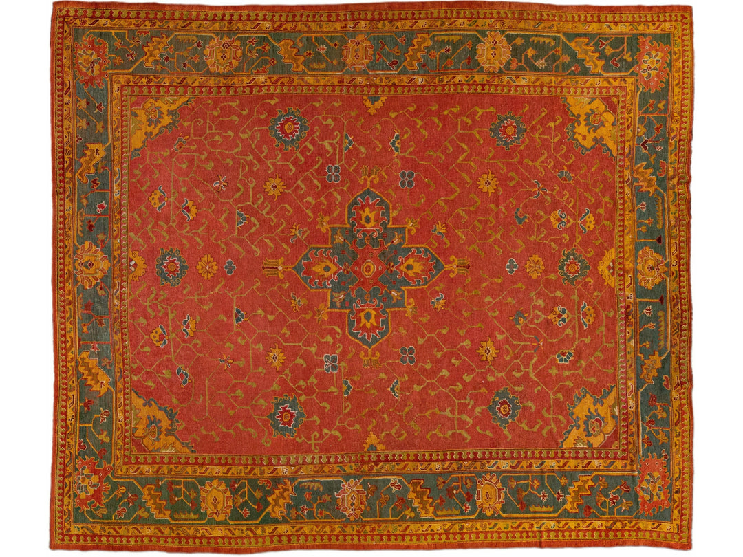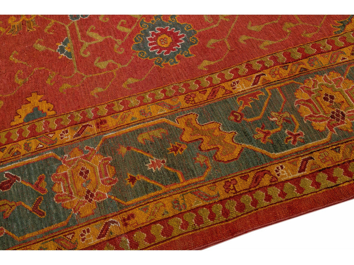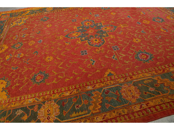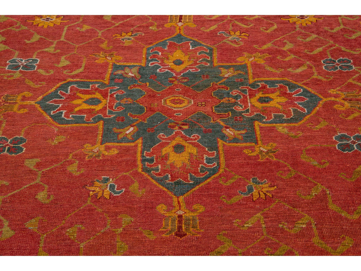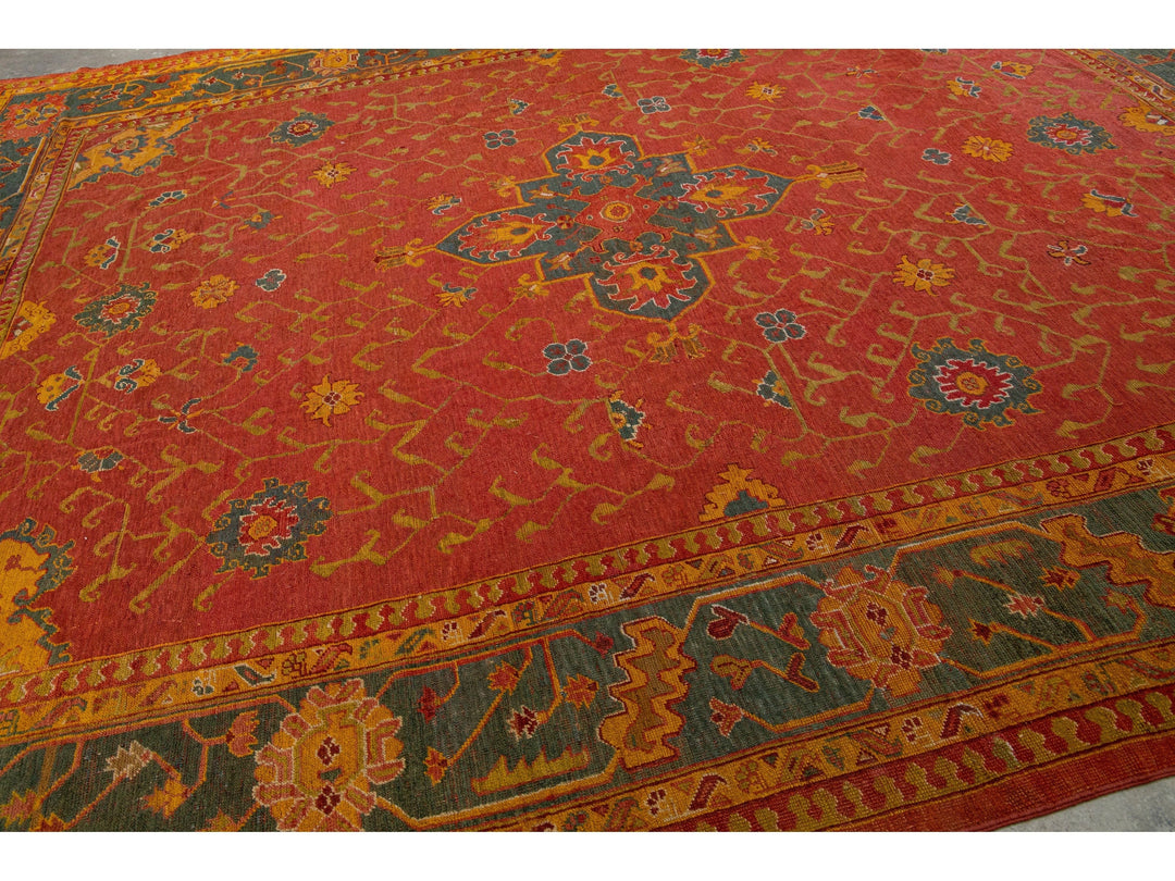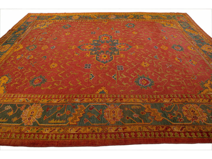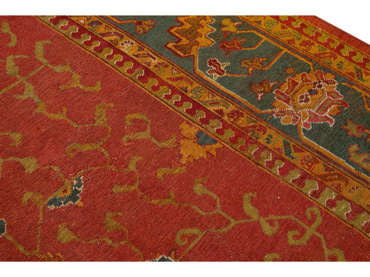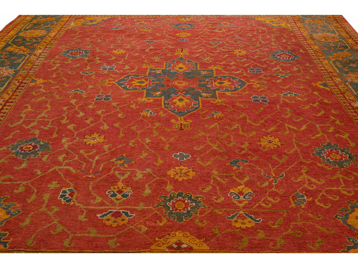 Red Antique Turkish Oushak Handmade Allover Designed Wool Rug