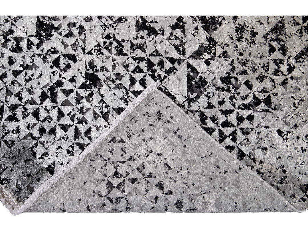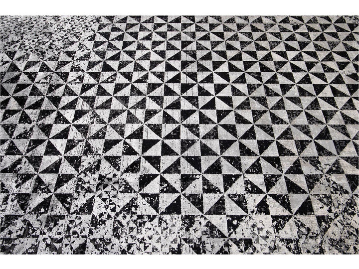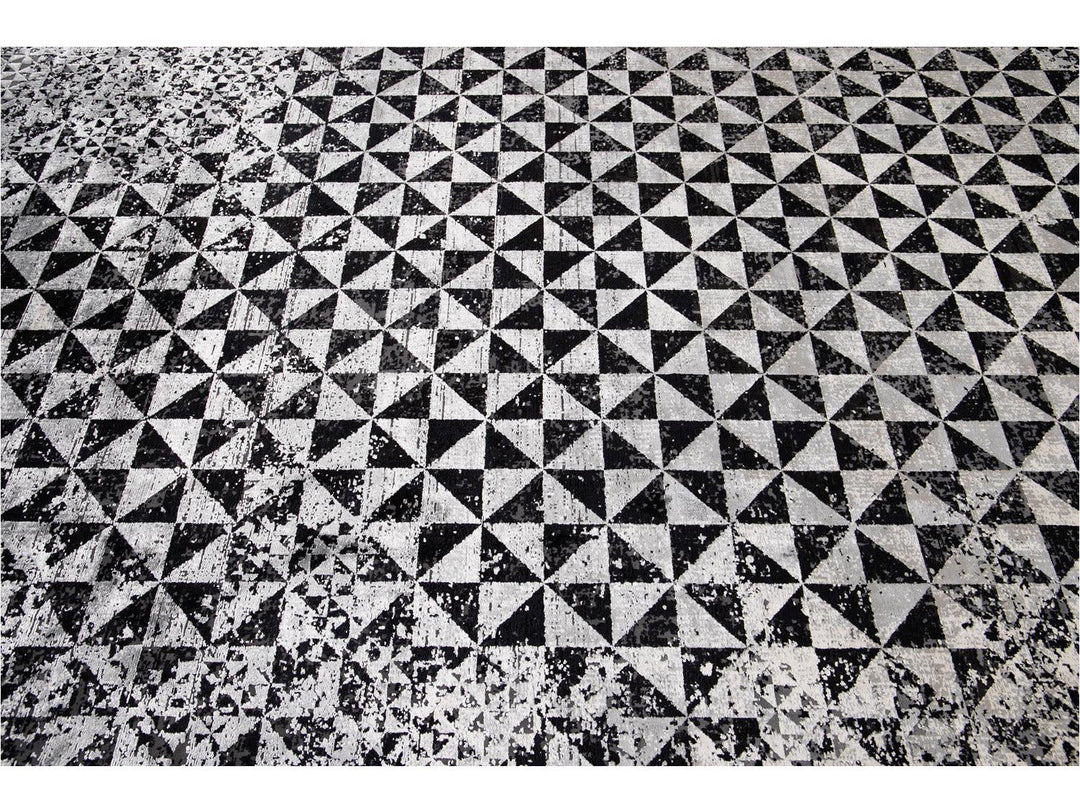 Beautiful contemporary high-end rug, machine-made with a gray field, black and white accents in a gorgeous allover abstract design.