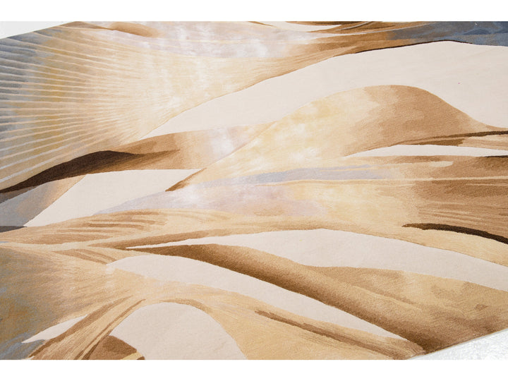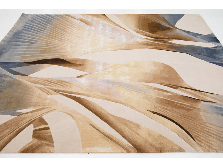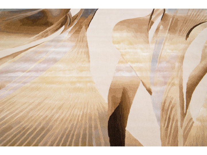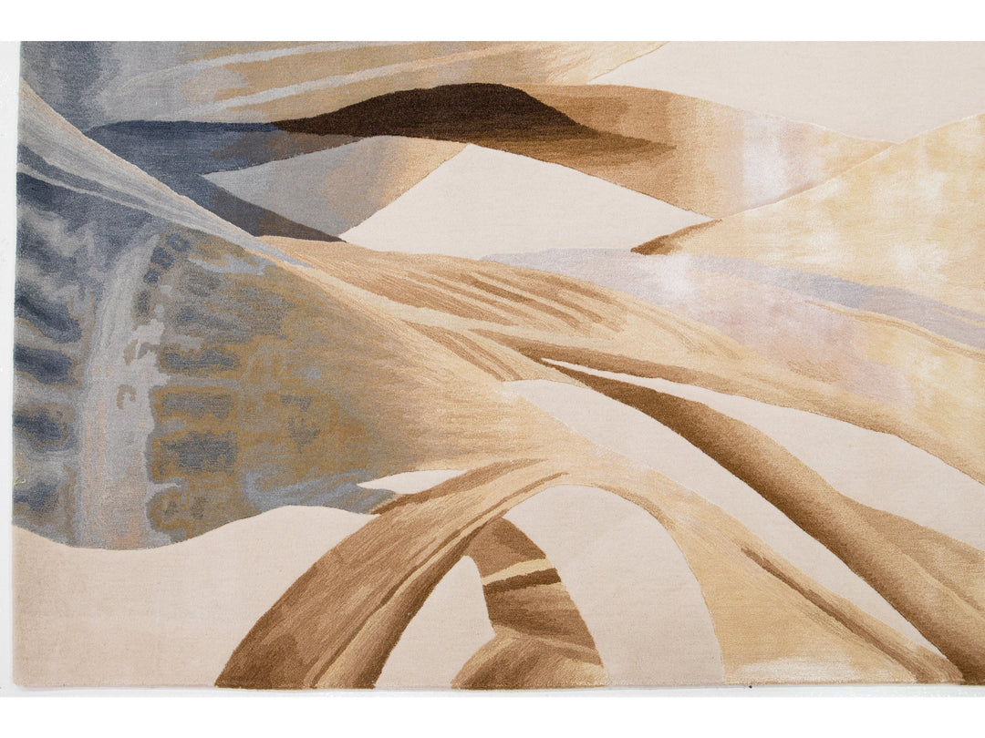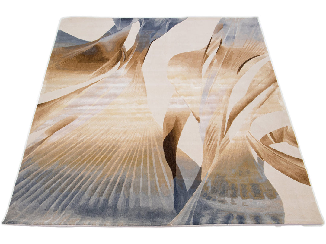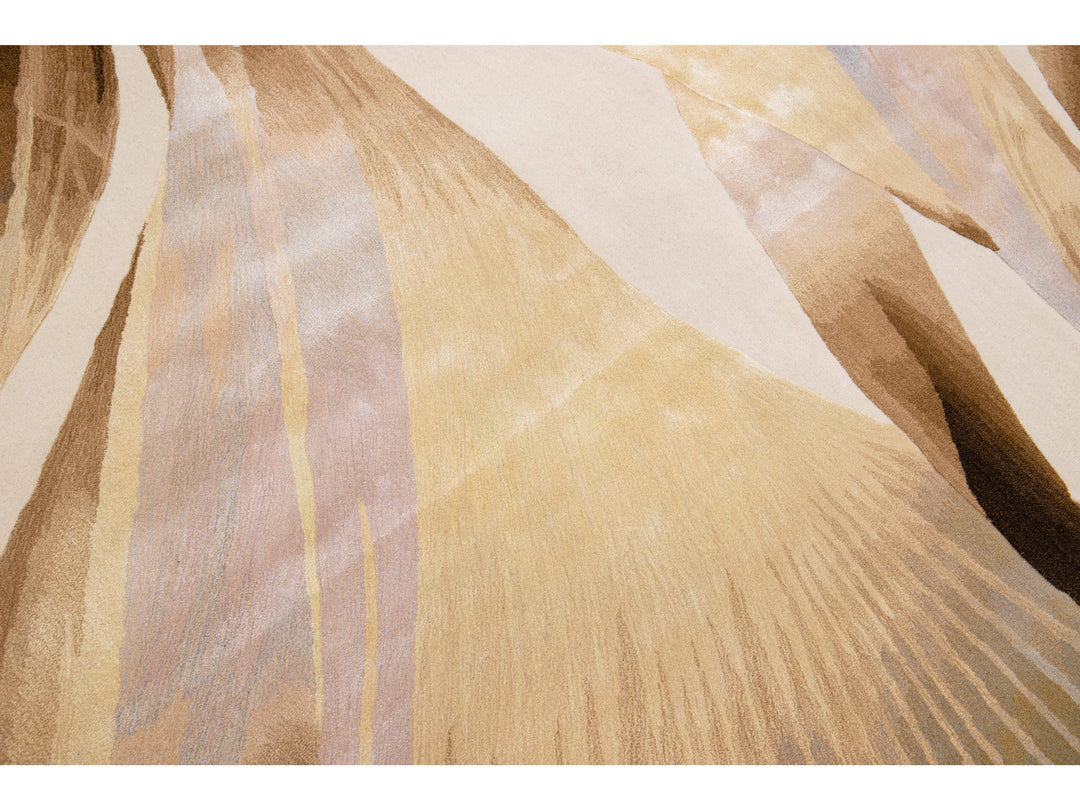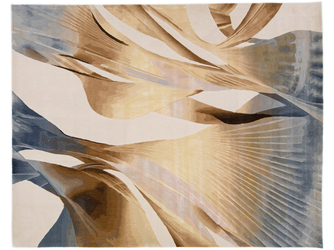 This hand-tufted abstract rug provides a captivating base for your interior design. Exhibiting a palette of elegant grey, regal gold, pristine ivory, and subtle beige, the contemporary pattern is enhanced with sparkling embellishments and meticulously carved elements, imbuing it with a refined sense of motion and dimension. Meticulously crafted by expert artisans, this rug is skillfully made from luxurious Luxcelle™ and New Zealand wool, ensuring long-lasting style for your space.