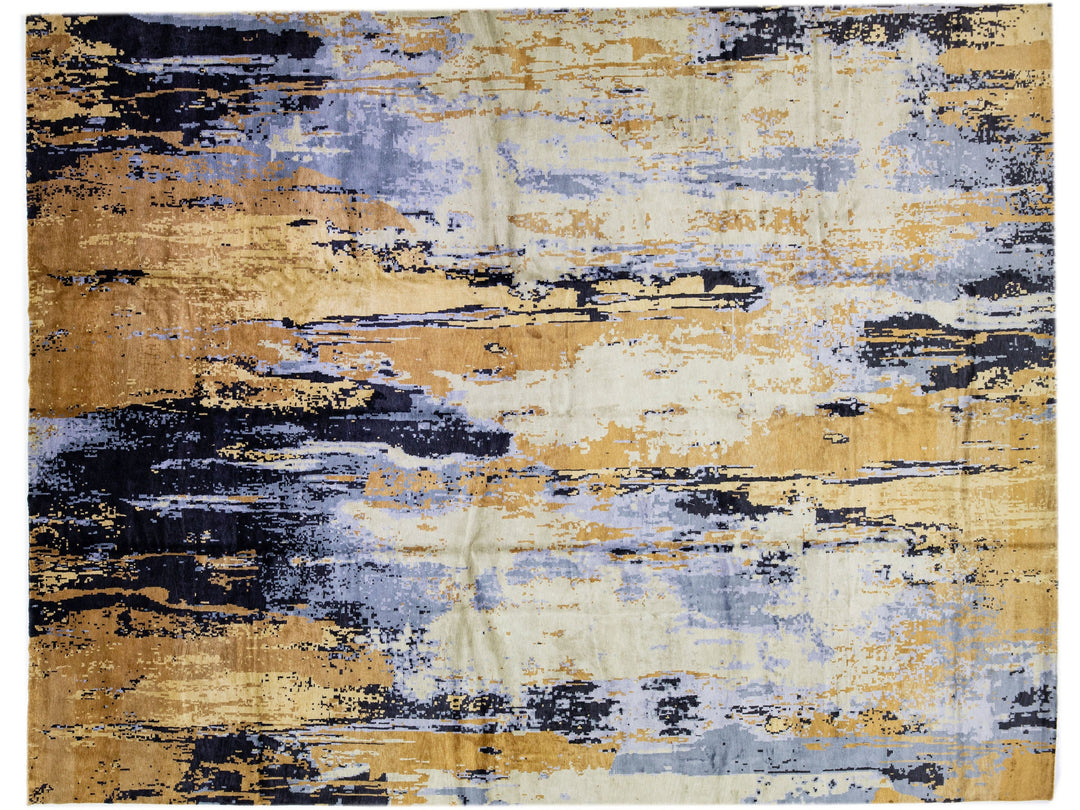 Modern Contemporary Wool & Silk Rug 13 X 17