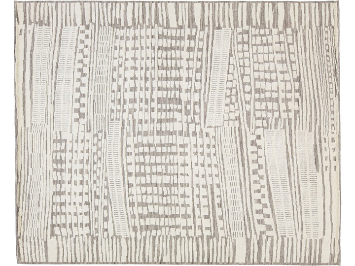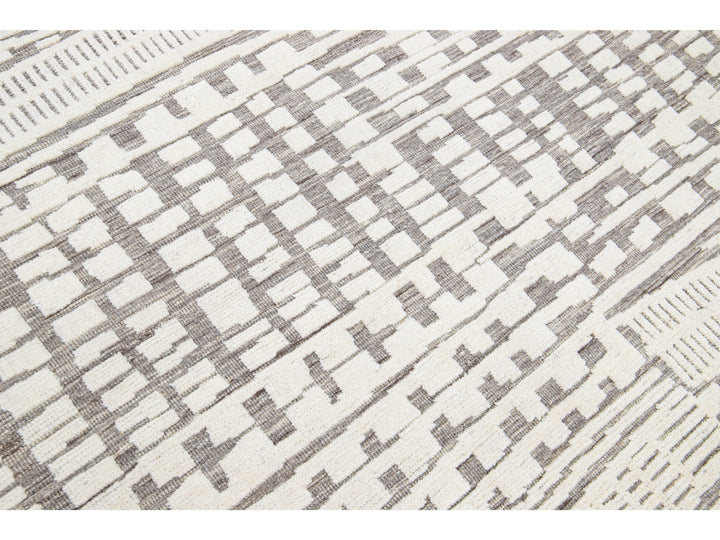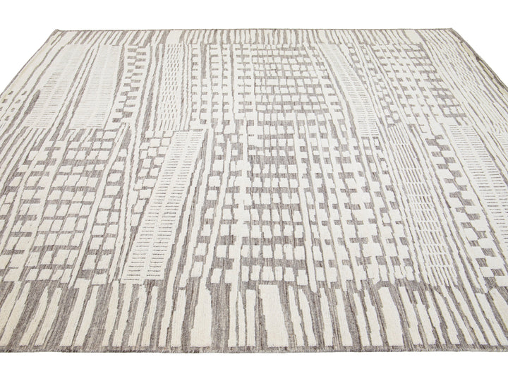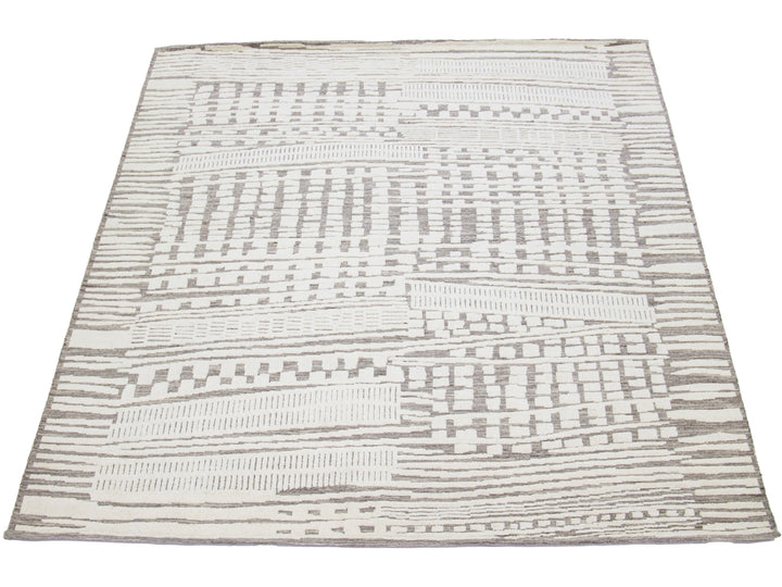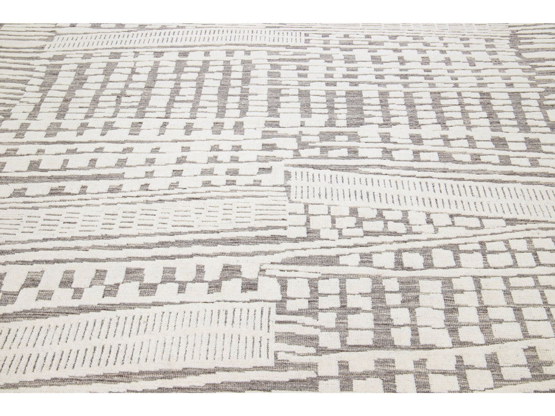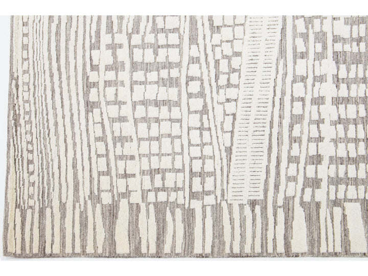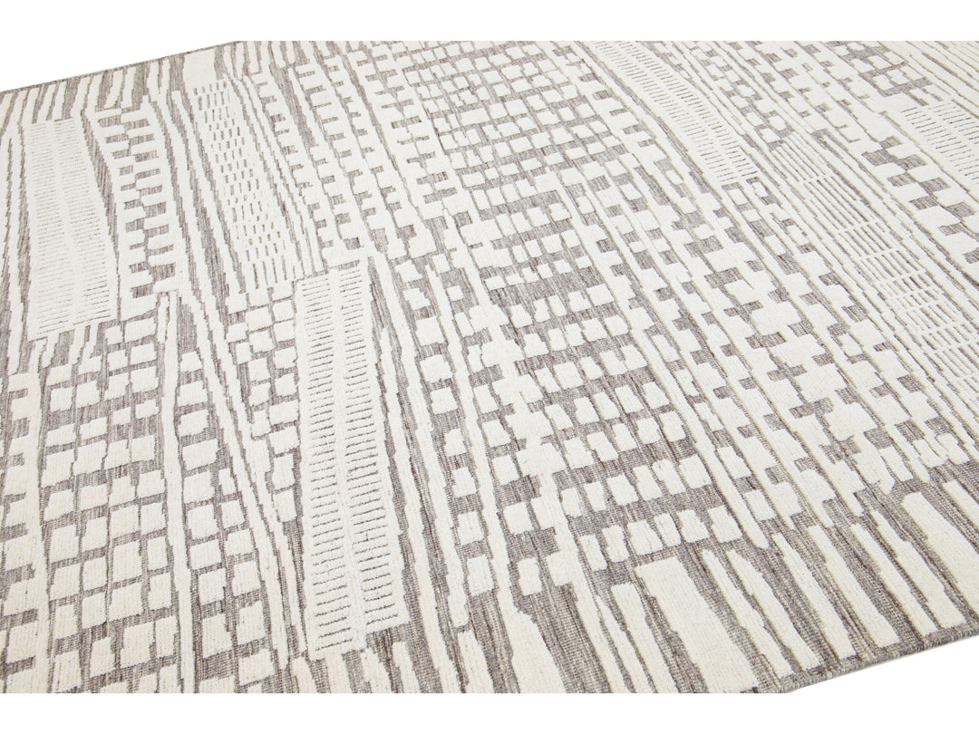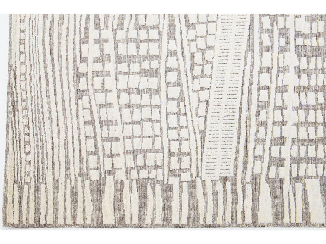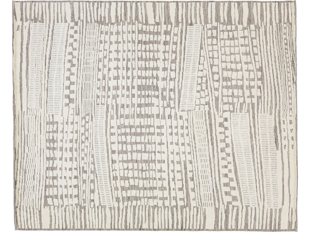 This Safi Collection features exquisite hand-knotted wool construction, showcasing a classic Moroccan design complete with Beige background and abstract motif. At 8'01" x 9'11", it's sure to be a centerpiece of any room.