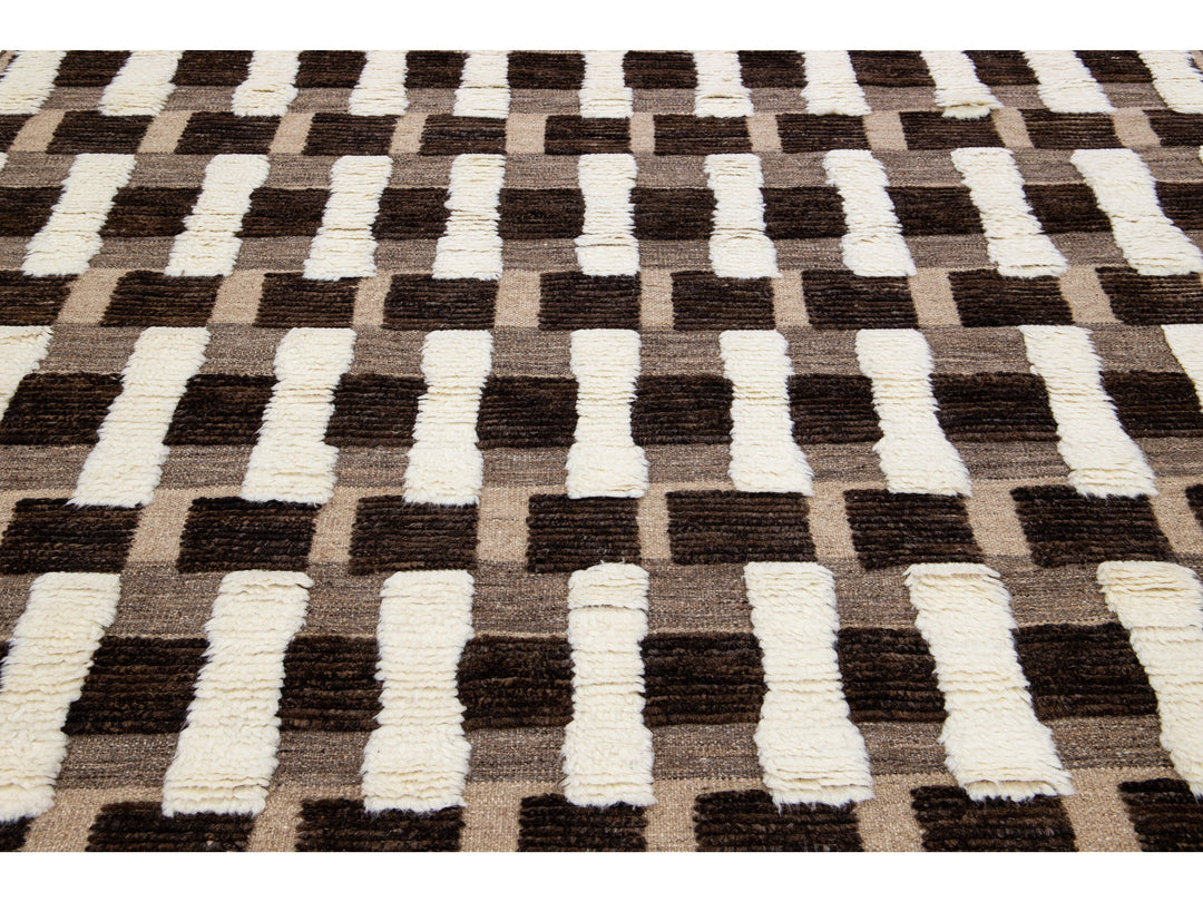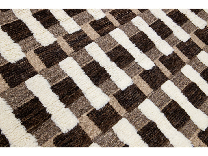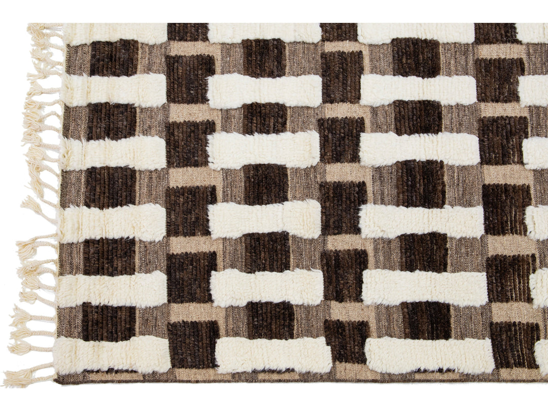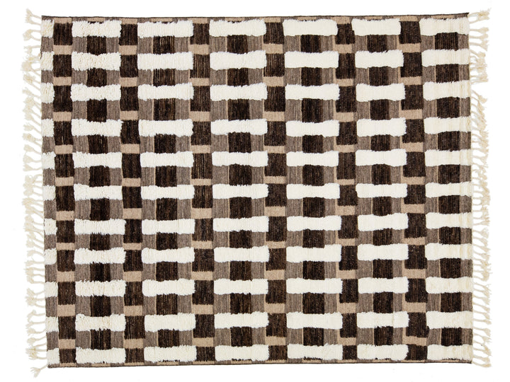 This Safi Collection features exquisite hand-knotted wool construction, showcasing a classic Moroccan design complete with Ivory background and geometric motif. At 8'00" x 10'00", it's sure to be a centerpiece of any room.
