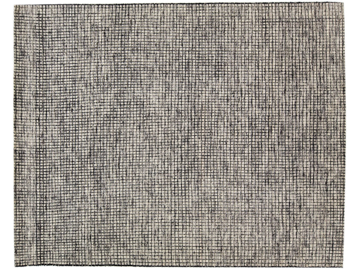 This Safi Collection features exquisite hand-knotted wool construction, showcasing a classic Moroccan design complete with Beige background featuring shades of gray and all over motif. At 8'00" x 10'00", it's sure to be a centerpiece of any room.