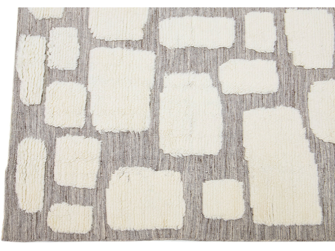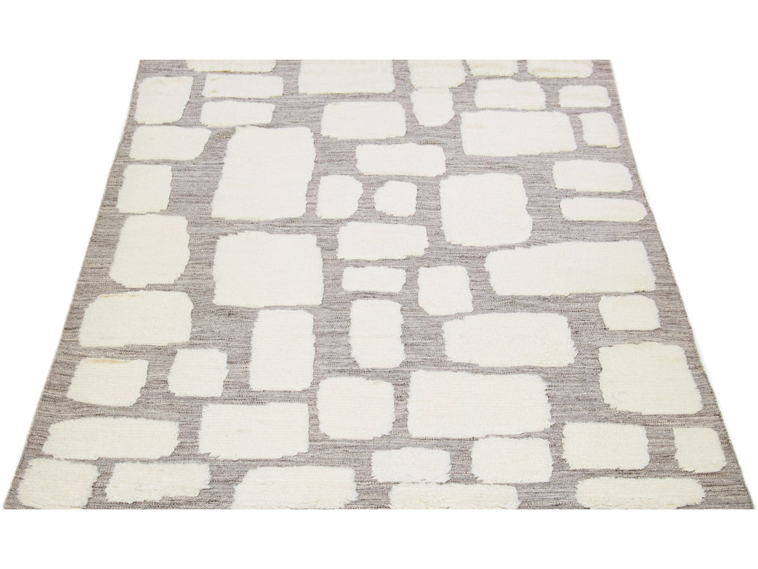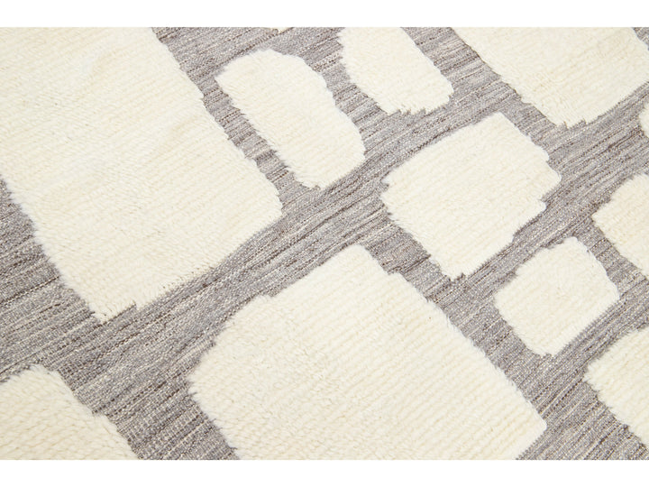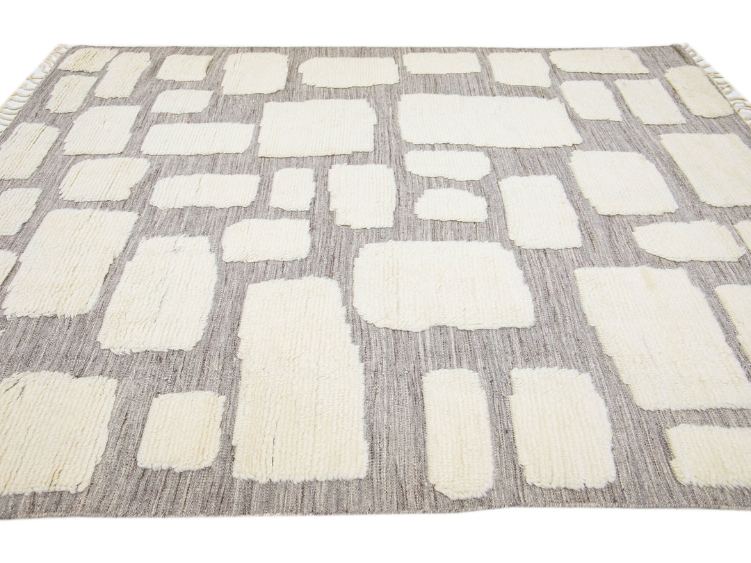 This Safi Collection features exquisite hand-knotted wool construction, showcasing a classic Moroccan design complete with an Ivory background and abstract motif. At 8'00" x 10'00", it's sure to be a centerpiece of any room.