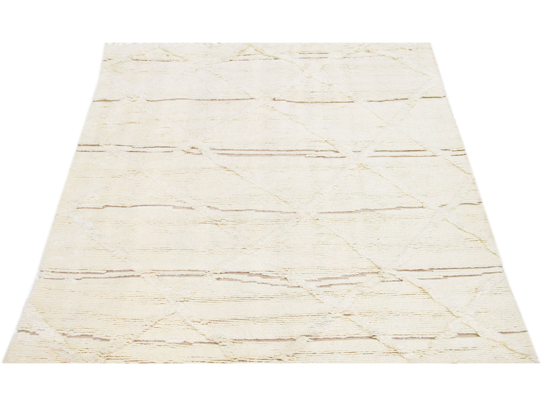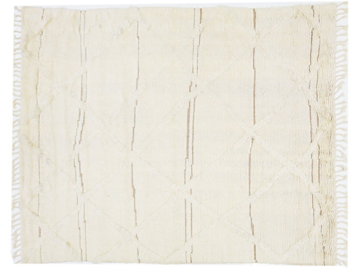 This Safi Collection features exquisite hand-knotted wool construction, showcasing a classic Moroccan design complete with Ivory background and tribal motif. At 8'00" x 10'00", it's sure to be a centerpiece of any room.