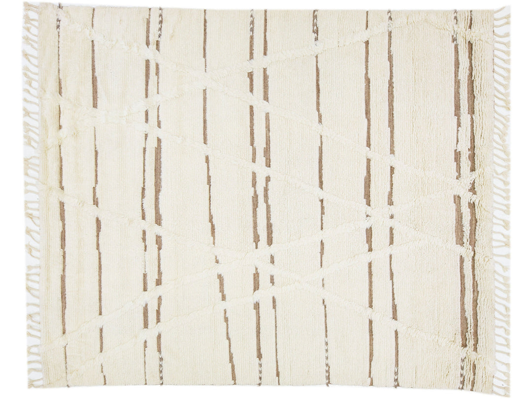 This Safi Collection features exquisite hand-knotted wool construction, showcasing a classic Moroccan design complete with an Ivory background and tribal motif. At 8'00" x 10'00", it's sure to be a centerpiece of any room.