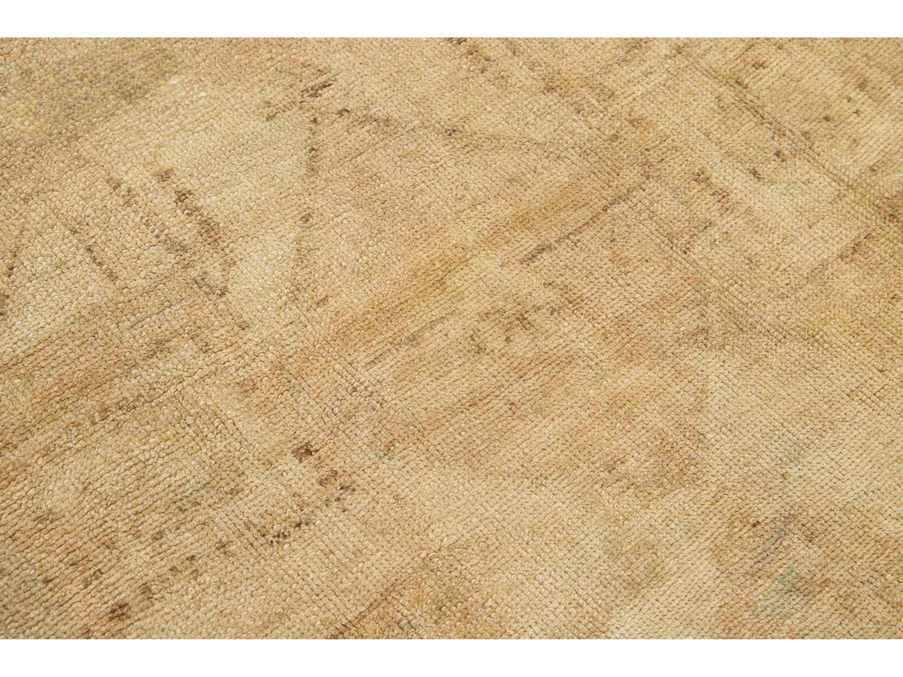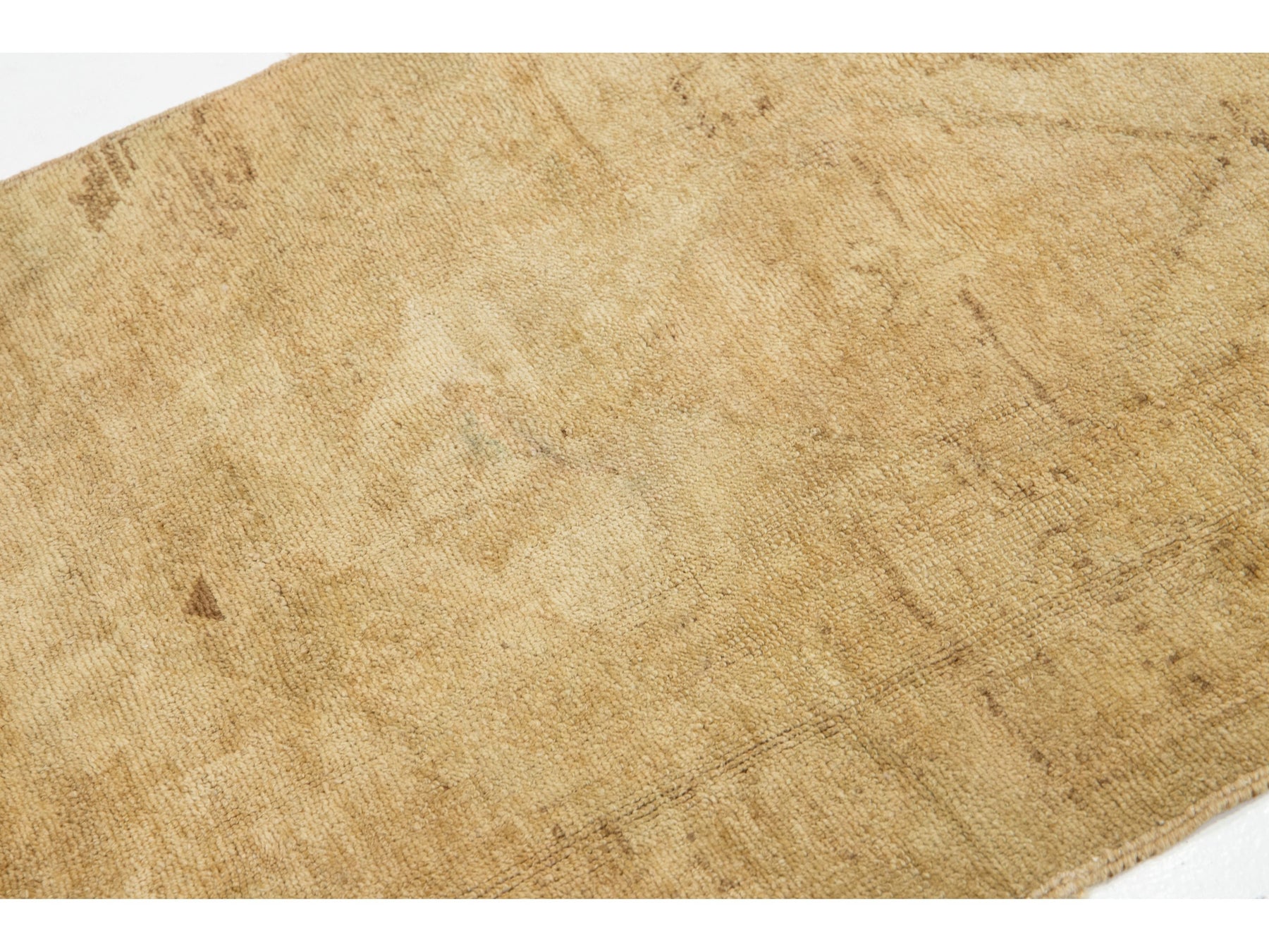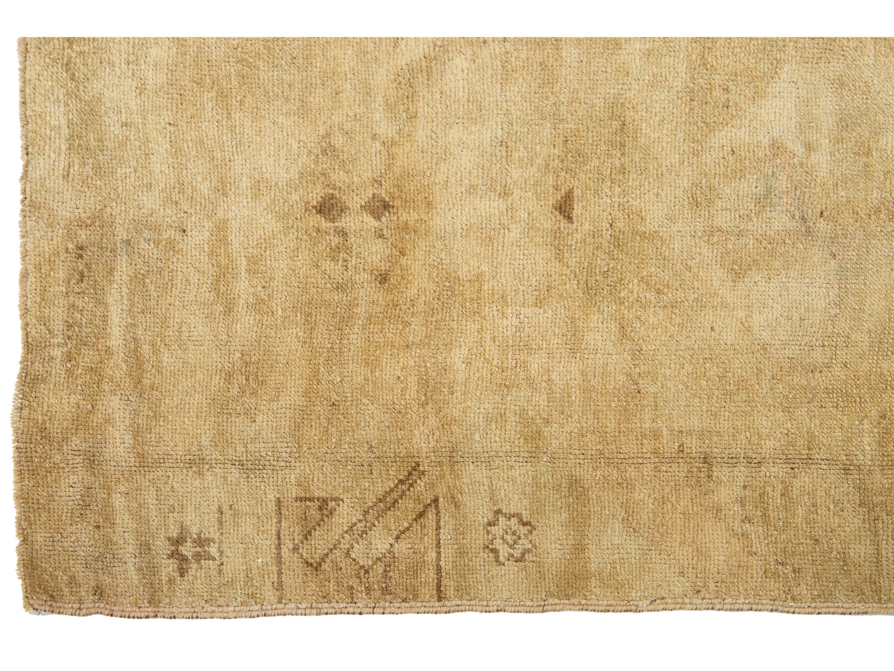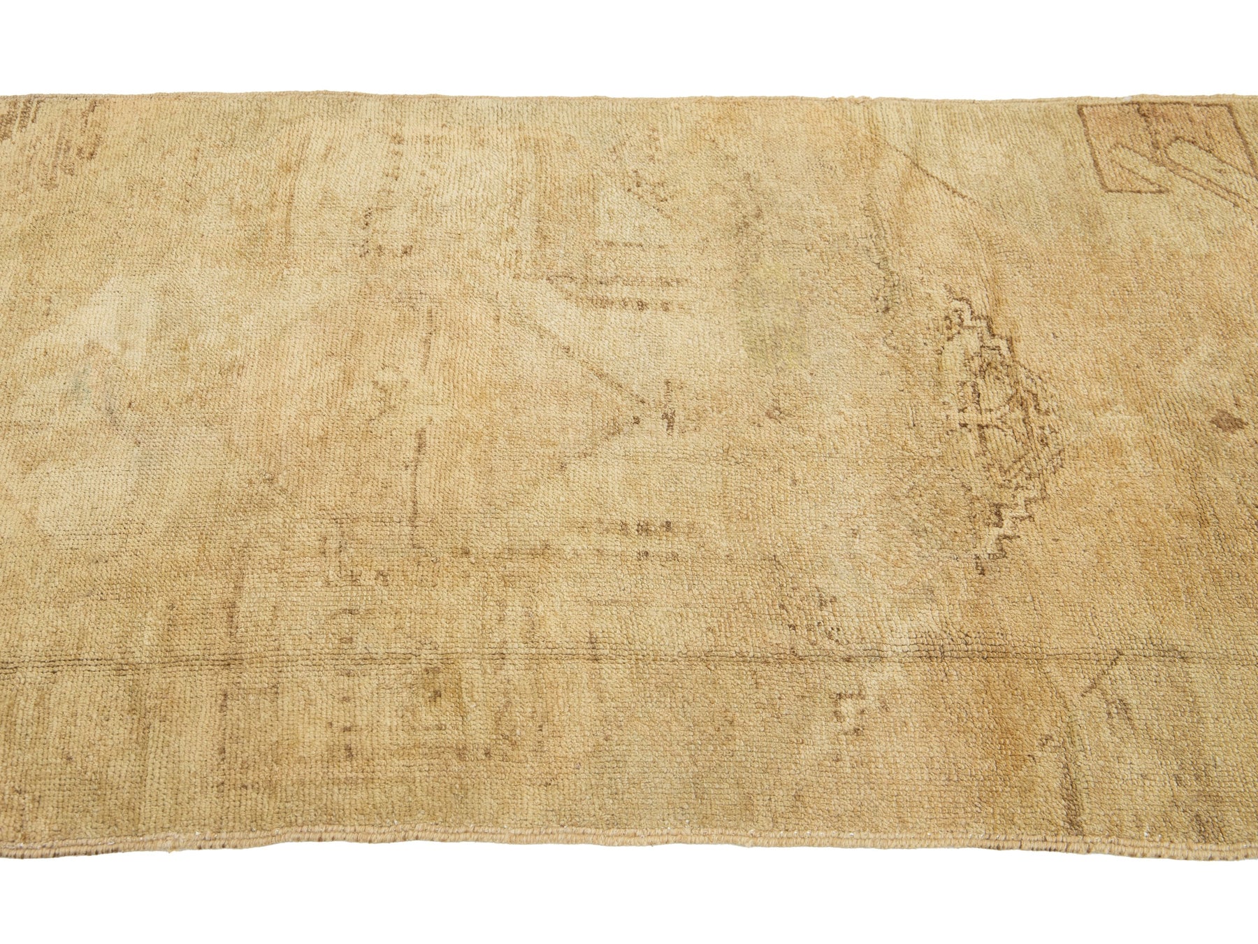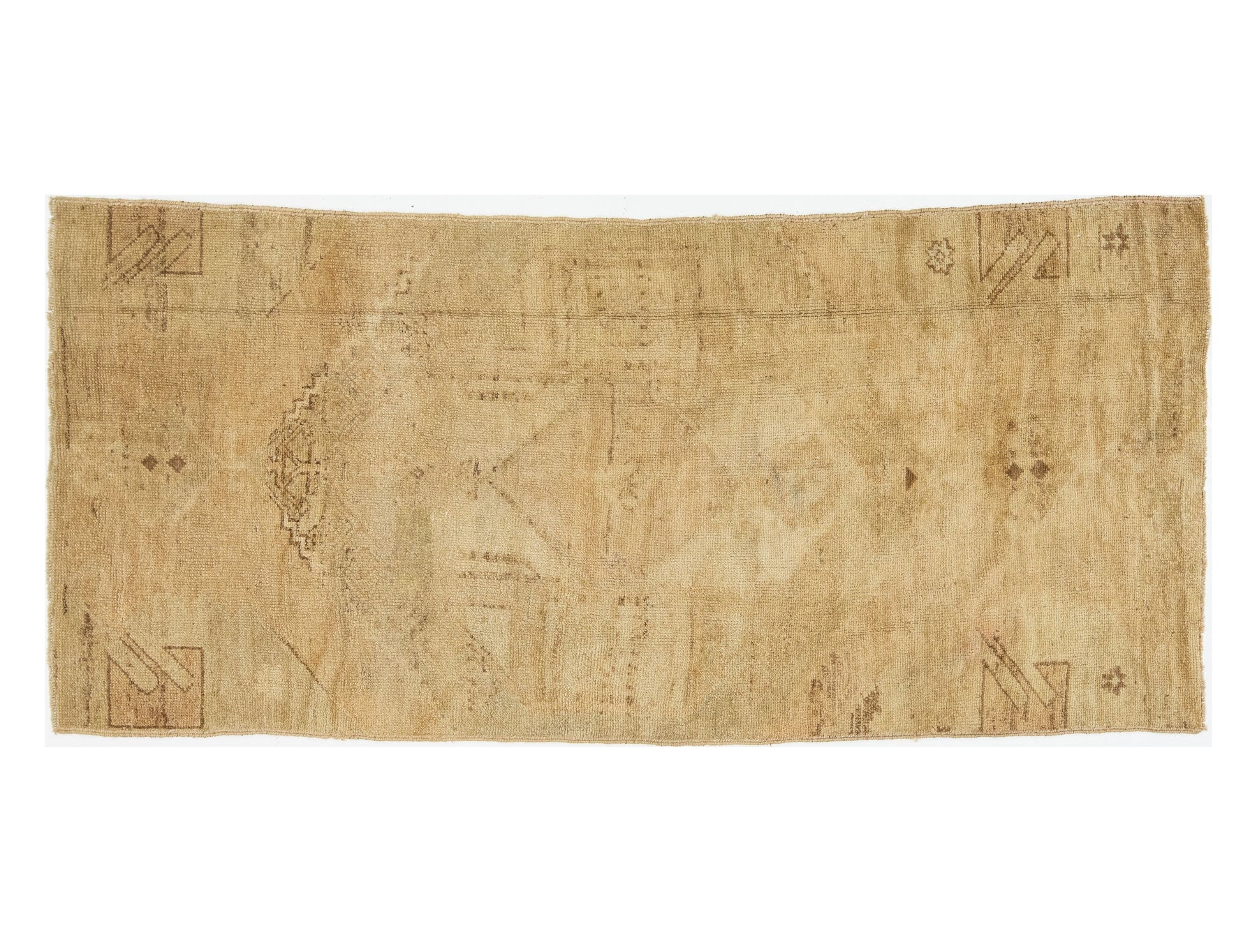 A vintage Turkish Anatolian wool rug, hand-knotted, featuring a geometric design displayed on a beige field. This rug measures 2'11" x 6'4".