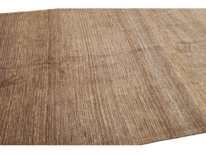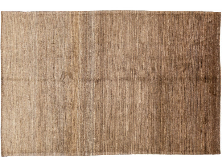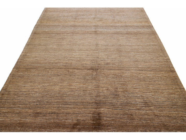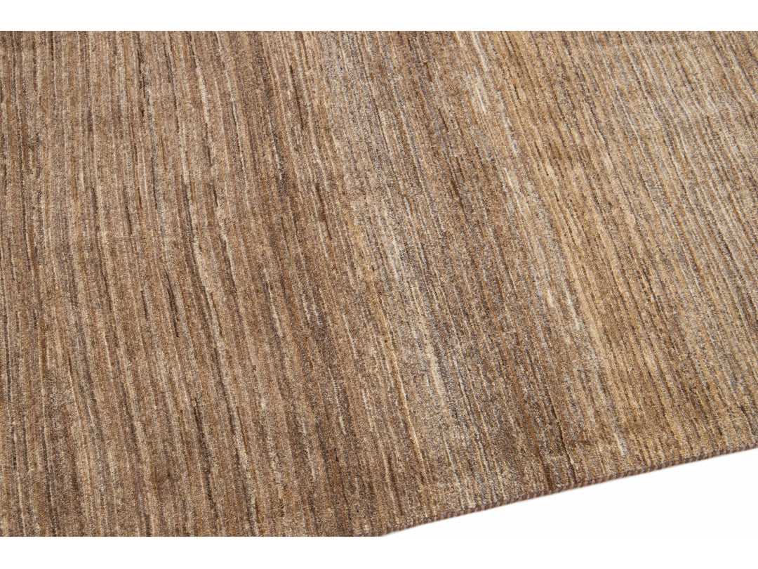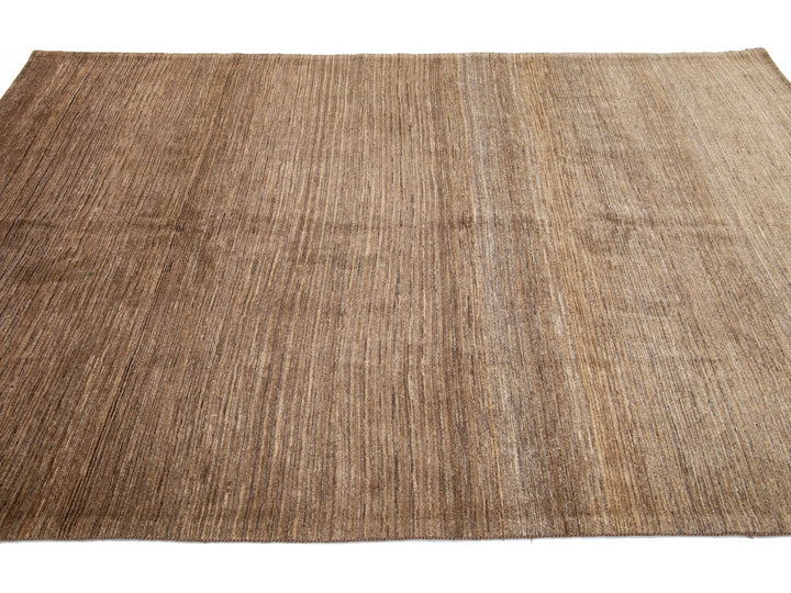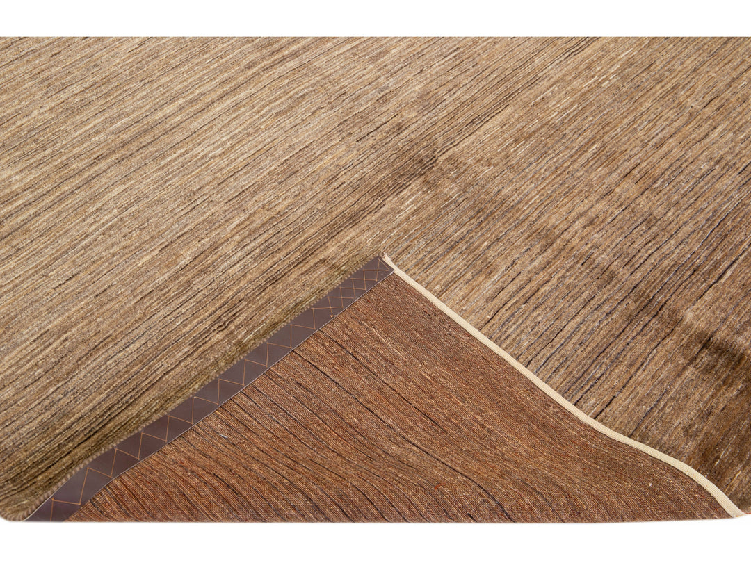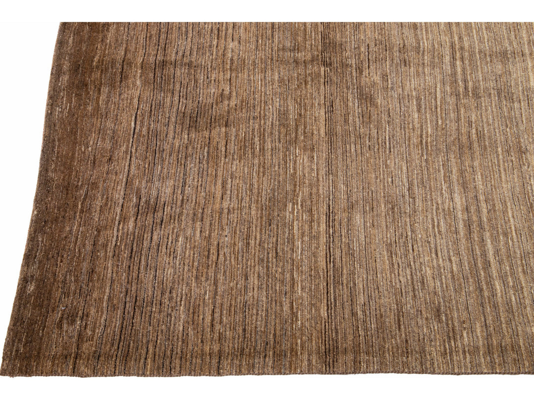 Beautiful modern Gabbeh hand-knotted wool rug with a brown field with gorgeous solid design.