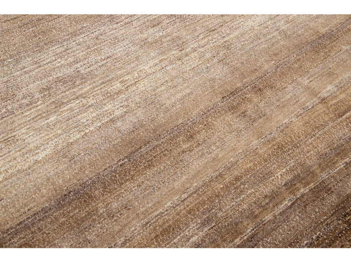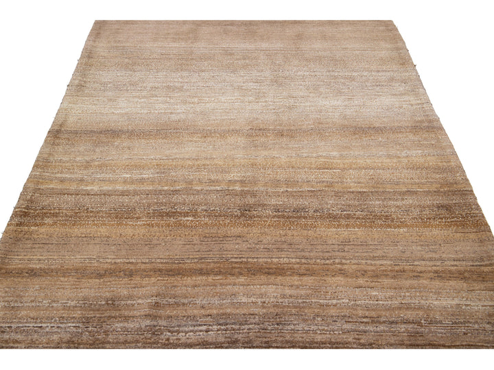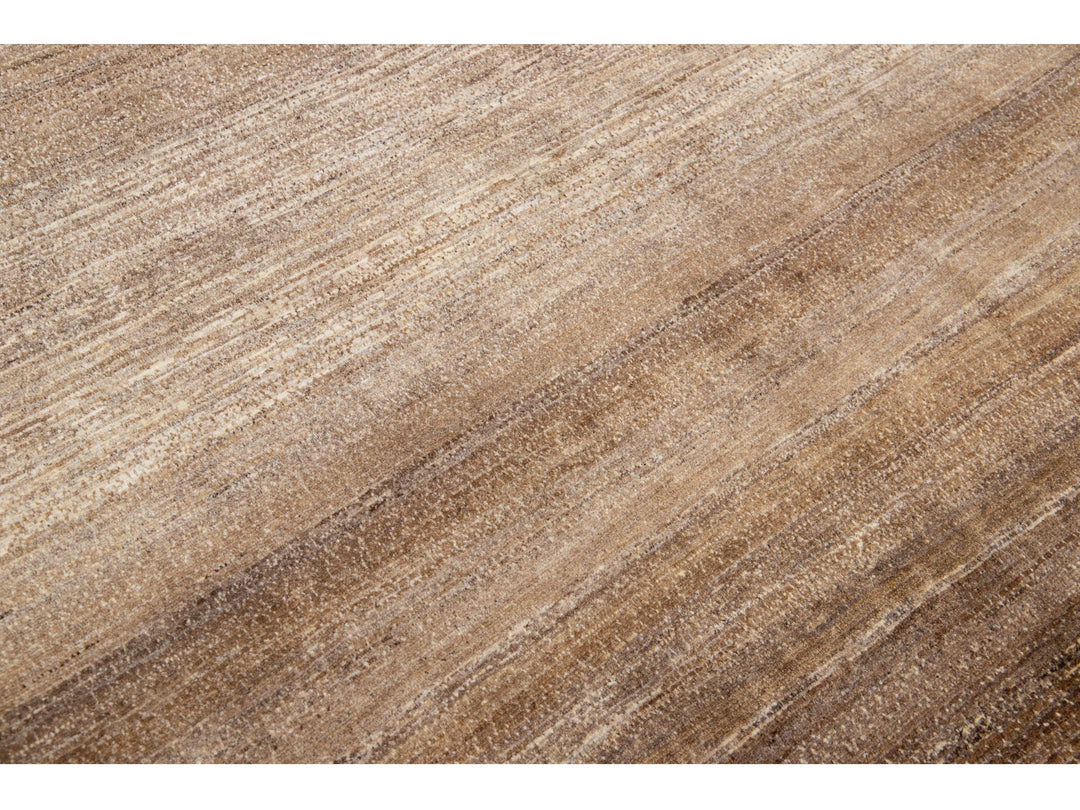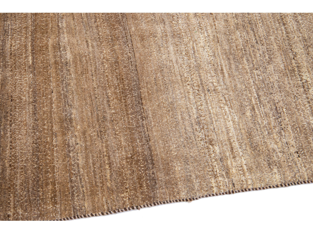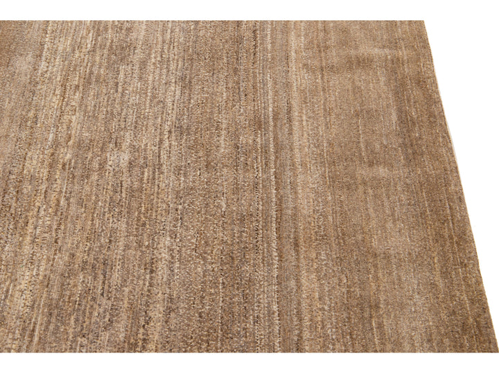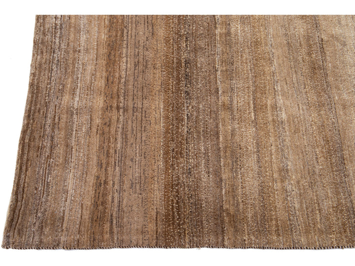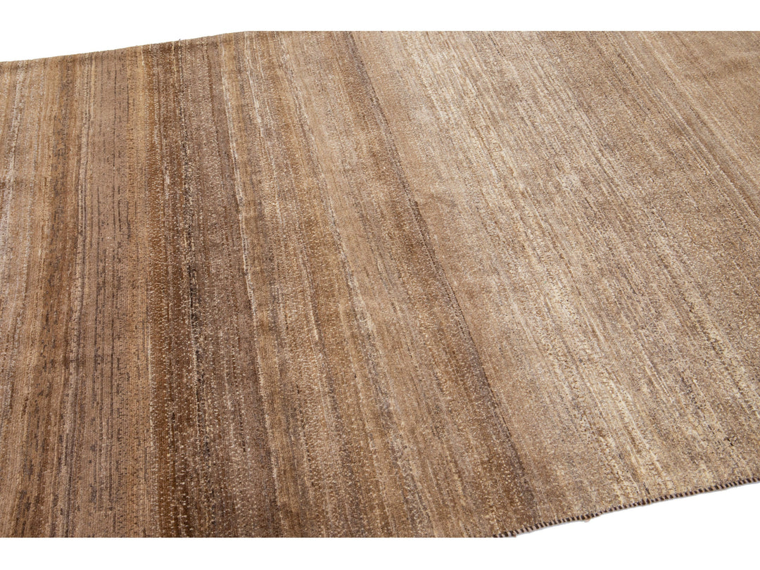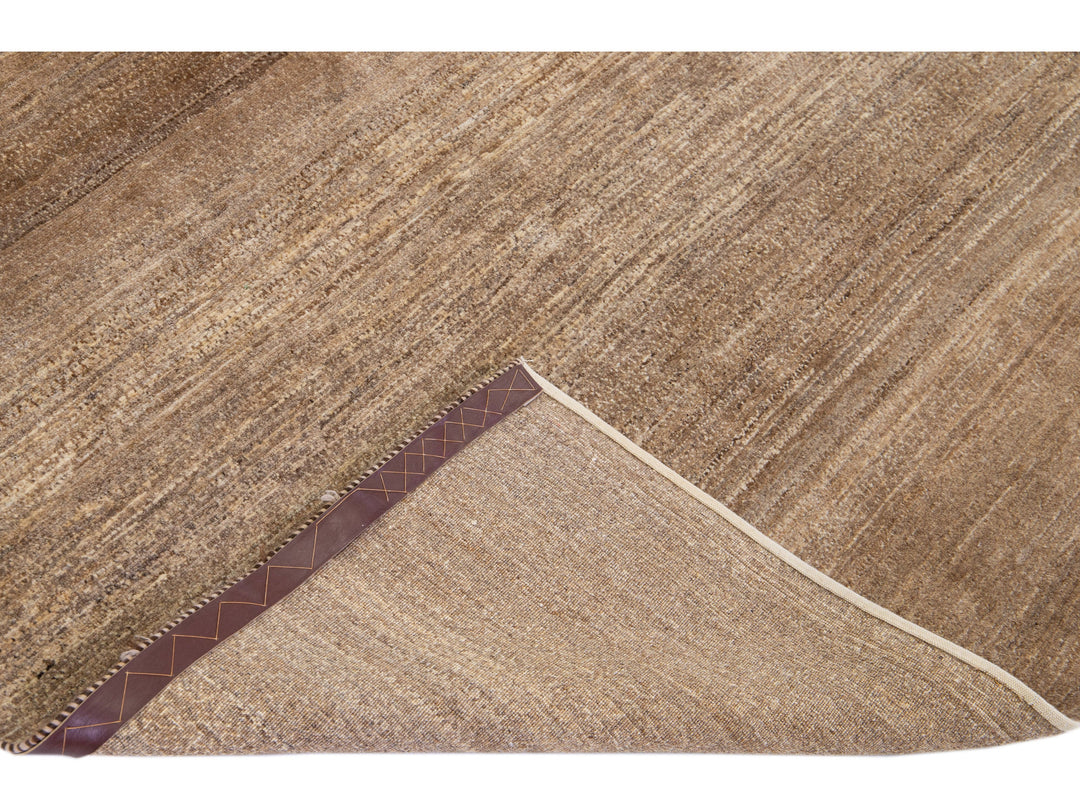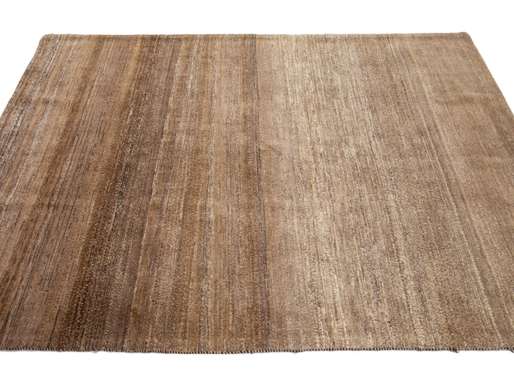 Beautiful modern Gabbeh-style hand-woven wool rug with a brown color field and gorgeous solid design.