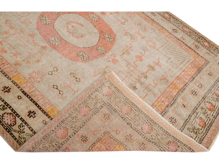 Antique Khotan Handmade Peach Persian Wool Rug With Allover Design