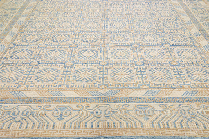 The Modern Khotan Wool Rug 12 X 15 is one of the best purchases I have ever made. I spent a long time searching the internet for the perfect style to complete our den and thank god I found Alexanders!