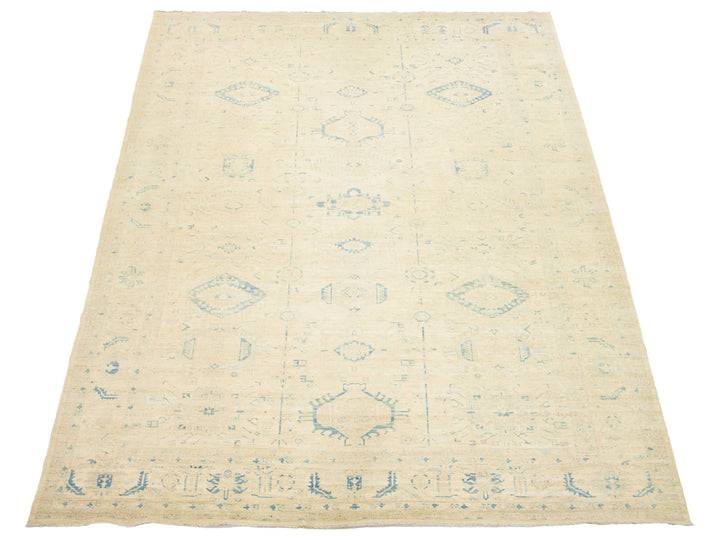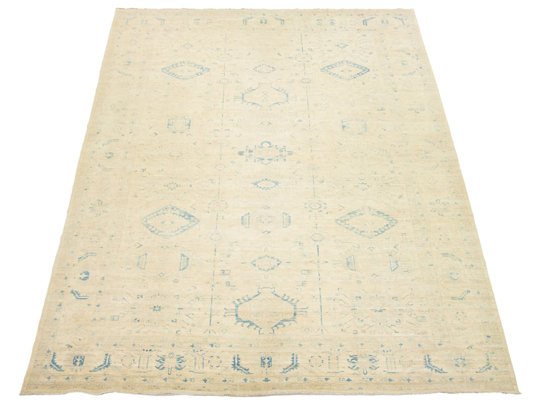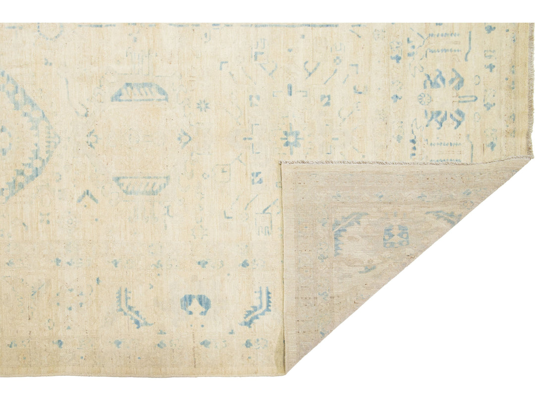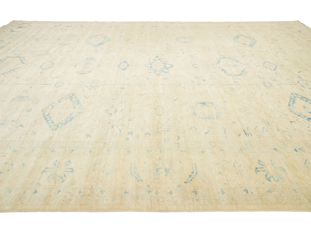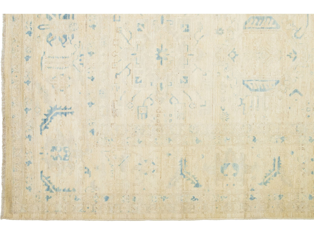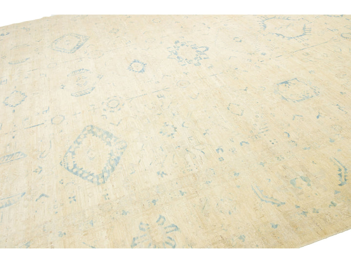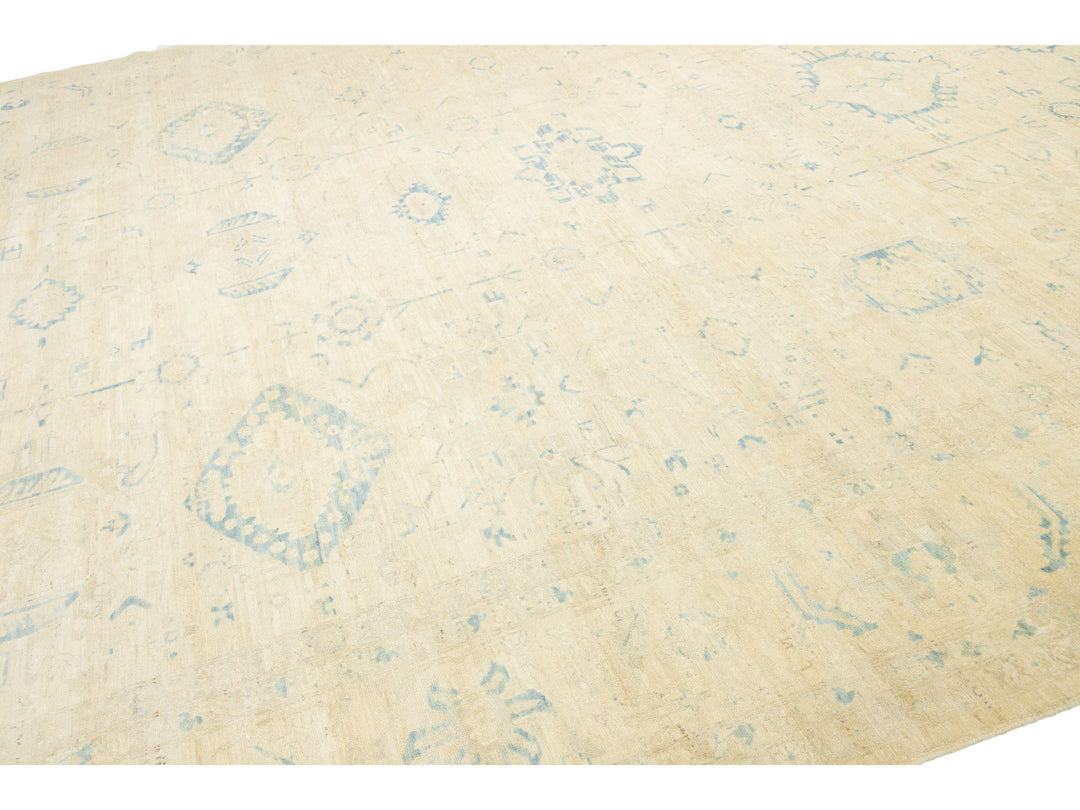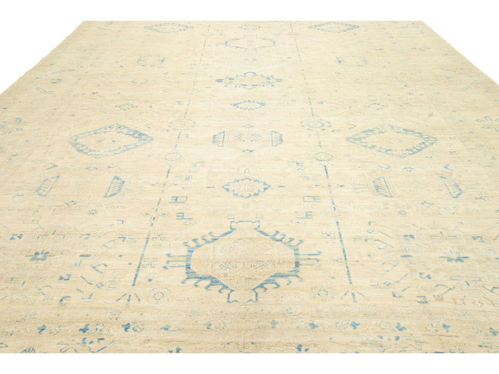 Elevate your space with this exquisitely designed, oversized wool rug meticulously handcrafted in a timeless beige hue. The Modern Khotan blends contemporary elegance with artisanal tradition, offering a versatile and sophisticated addition to any room. This rug measures 12' x 17'6".