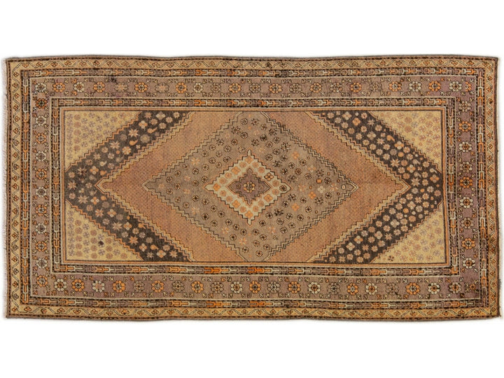 Antique Khotan Handmade Tan Medallion Wool Rug