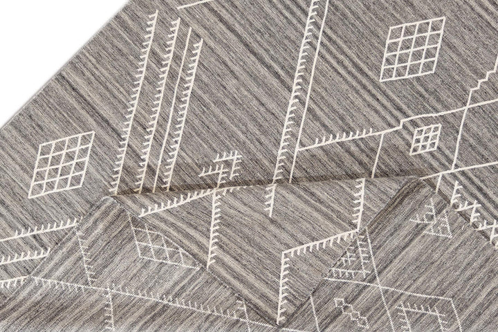 Beautiful Contemporary Flatweave Rug, hand-knotted wool with a charcoal field in an allover classic design.