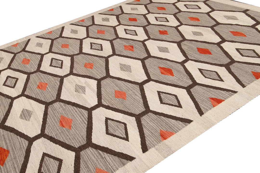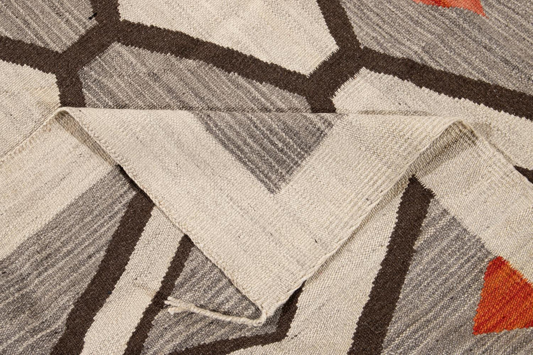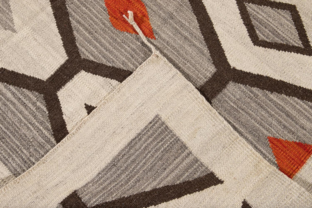 Modern Flat-Weave Navajo Wool Rug 10 X 14