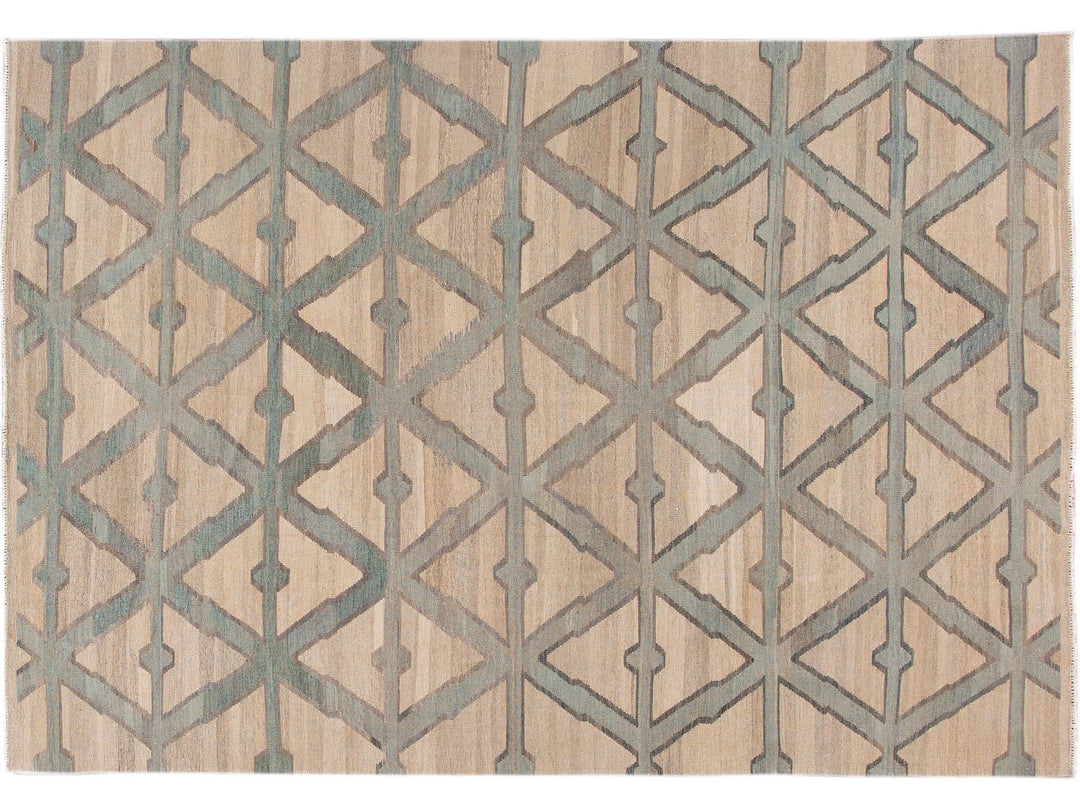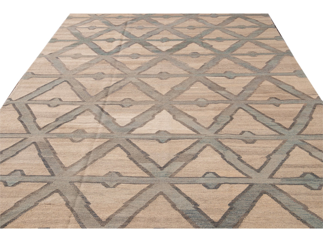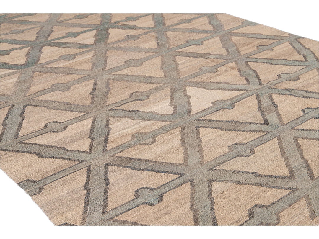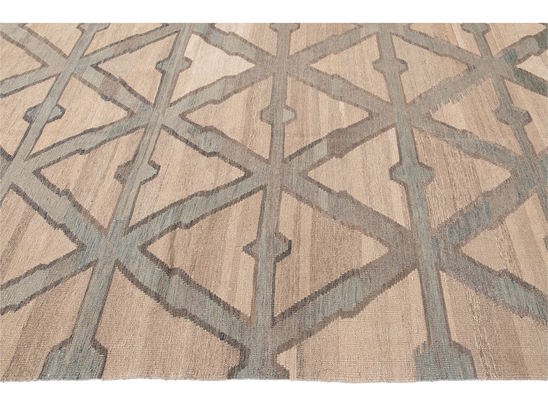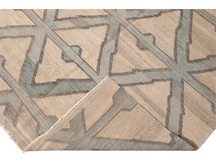 Modern Beige Kilim Flatweave Geometric Pattern Wool Rug