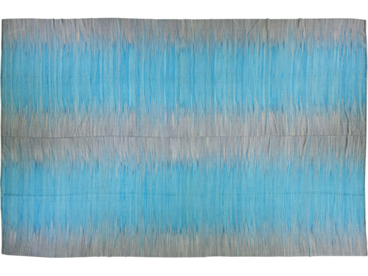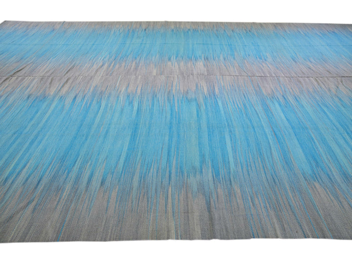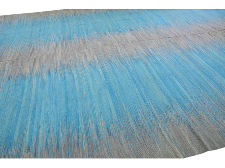 Modern Kilim Flatweave Blue and Gray Abstract Motif Oversize Wool Rug