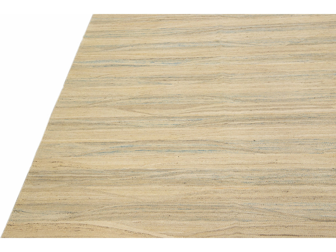 Beige Modern Kilim Handmade Abstract Striped Motif Flatweave Oversize Wool Rug