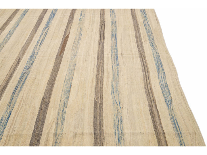 Beige Modern Kilim Handmade Striped Pattern Flatweave Wool Rug