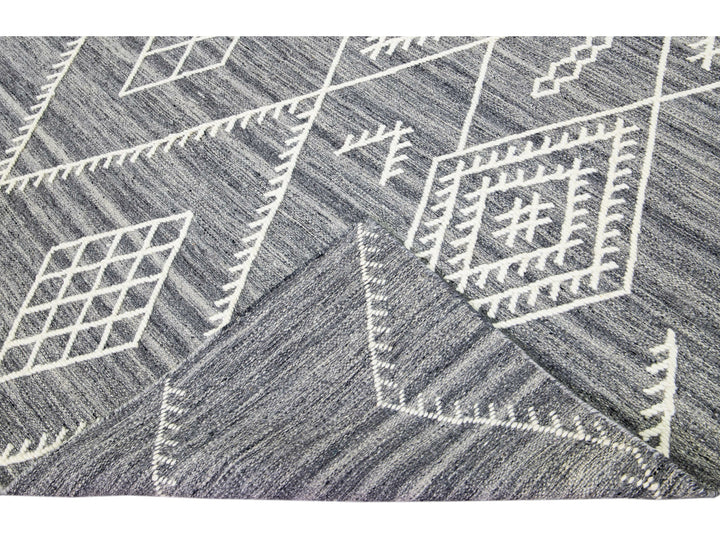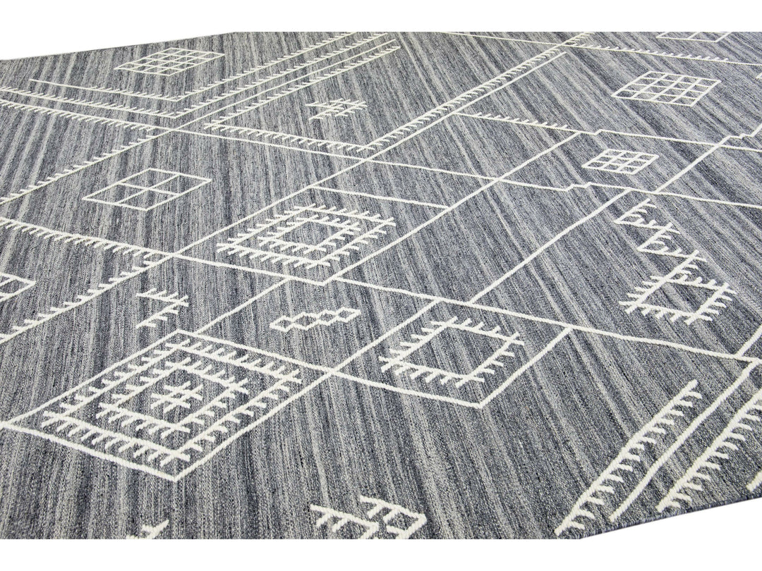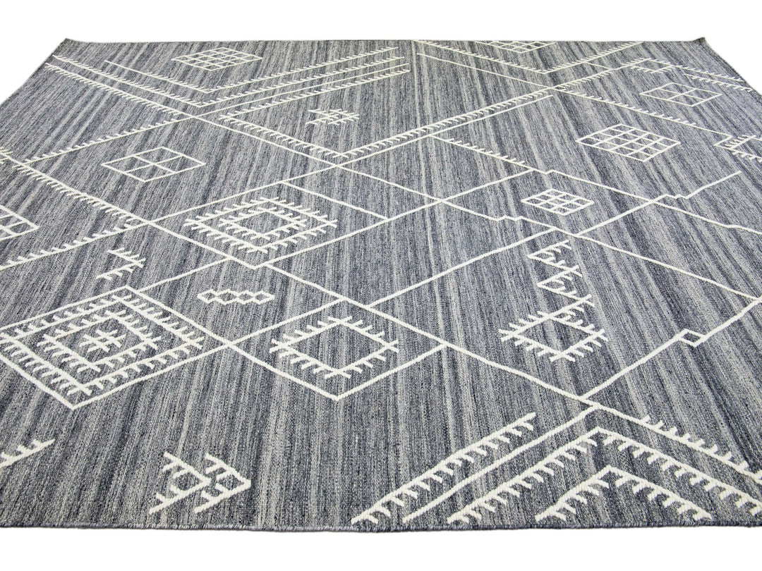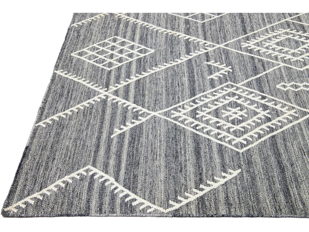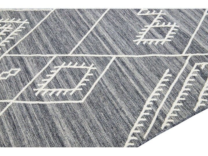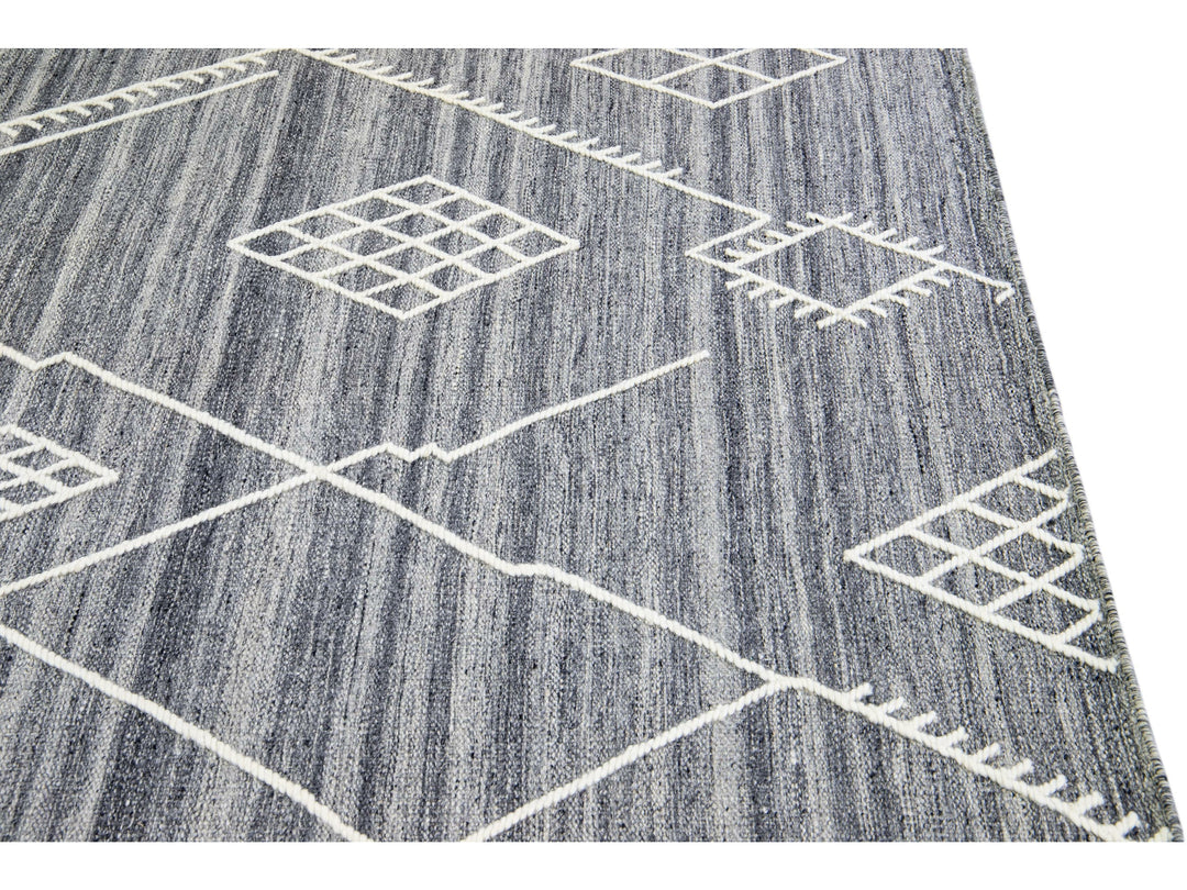 Apadana's Nantucket Collection Flatweave Kilim Coastal Designed Gray Wool Rug