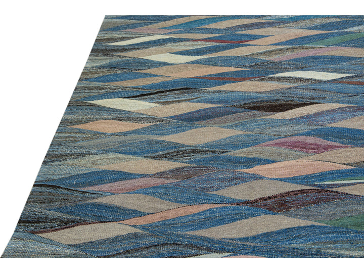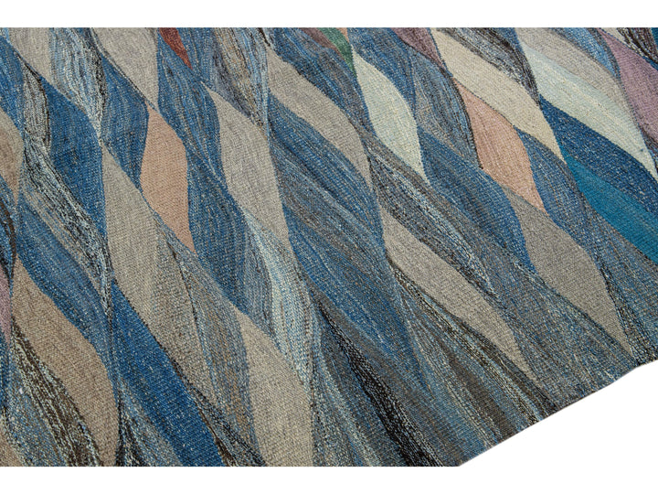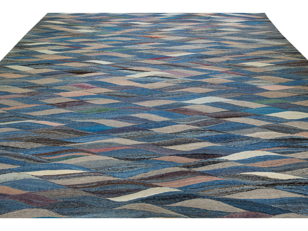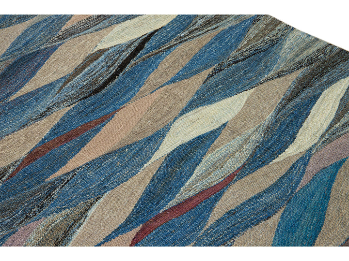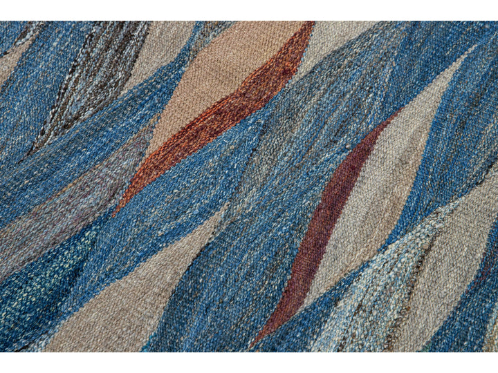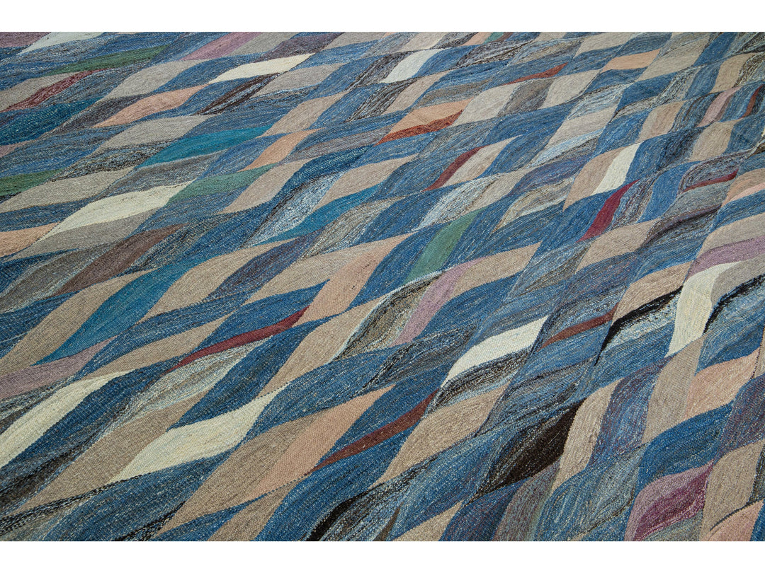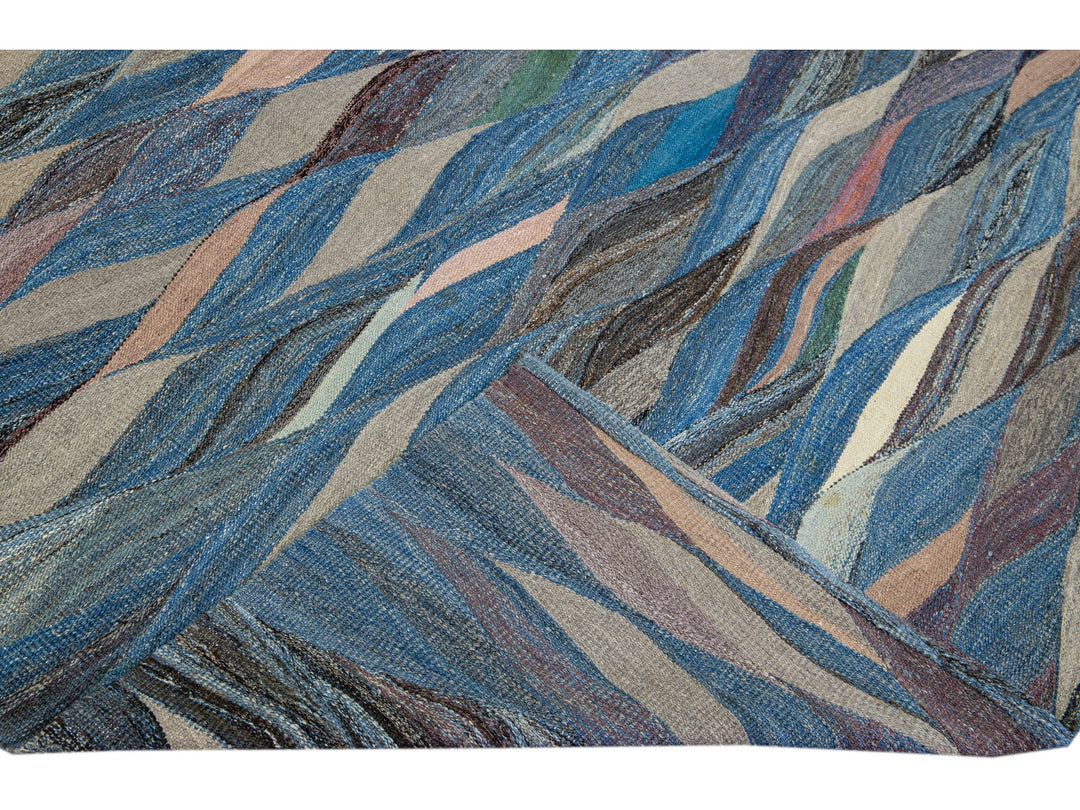 Blue Modern Abstract Flat-Weave Oversize Wool Rug