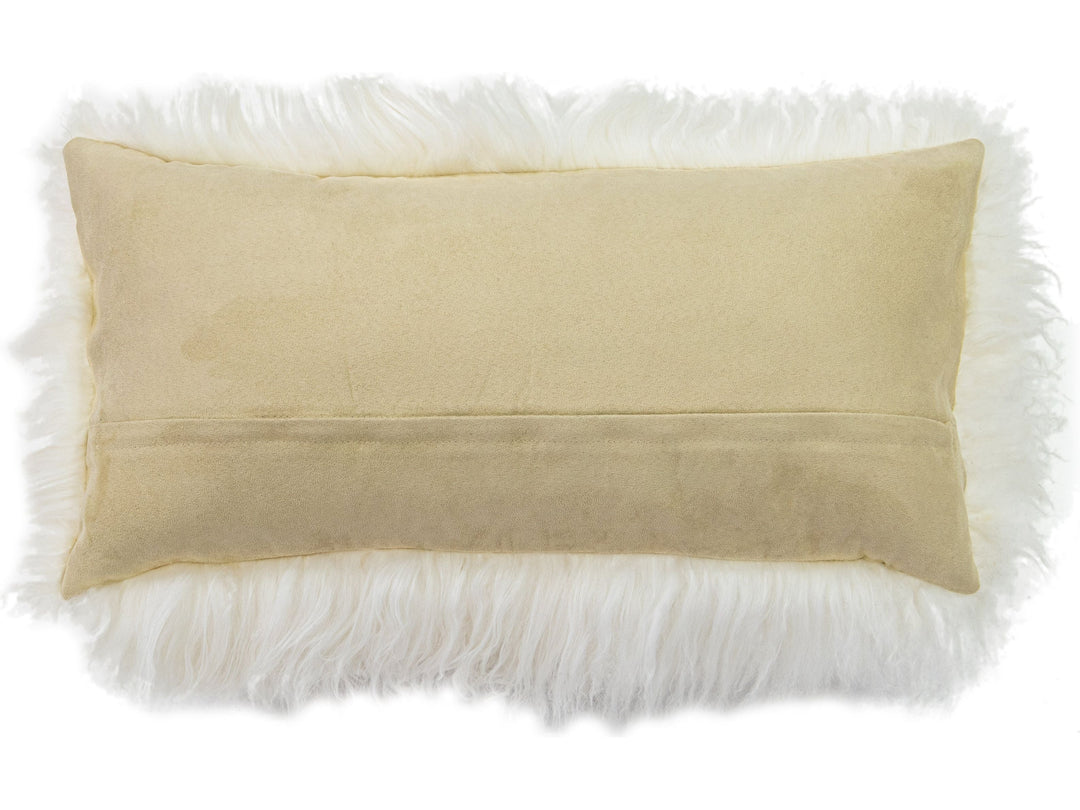 Enhance your home decor with the Modern Mongolian Lamb Fur Single Side Pillow. Designed with meticulous care and crafted from luxurious materials, this hand-made 12" x 24" pillow features a sleek, solid design and includes a feather down insert for added comfort.