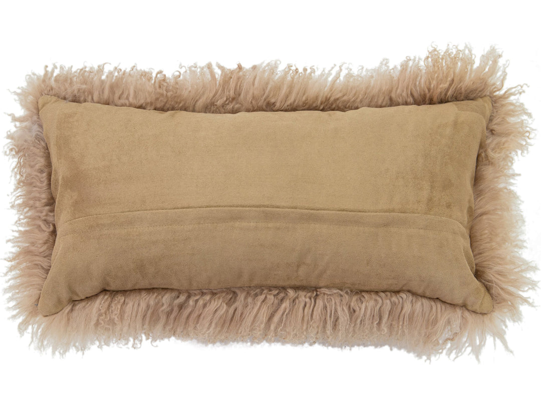 Enhance your home decor with the Modern Mongolian Lamb Fur Single Side Pillow. Designed with meticulous care and crafted from luxurious materials, this hand-made 12" x 24" pillow features a sleek, solid design and includes a feather down insert for added comfort.