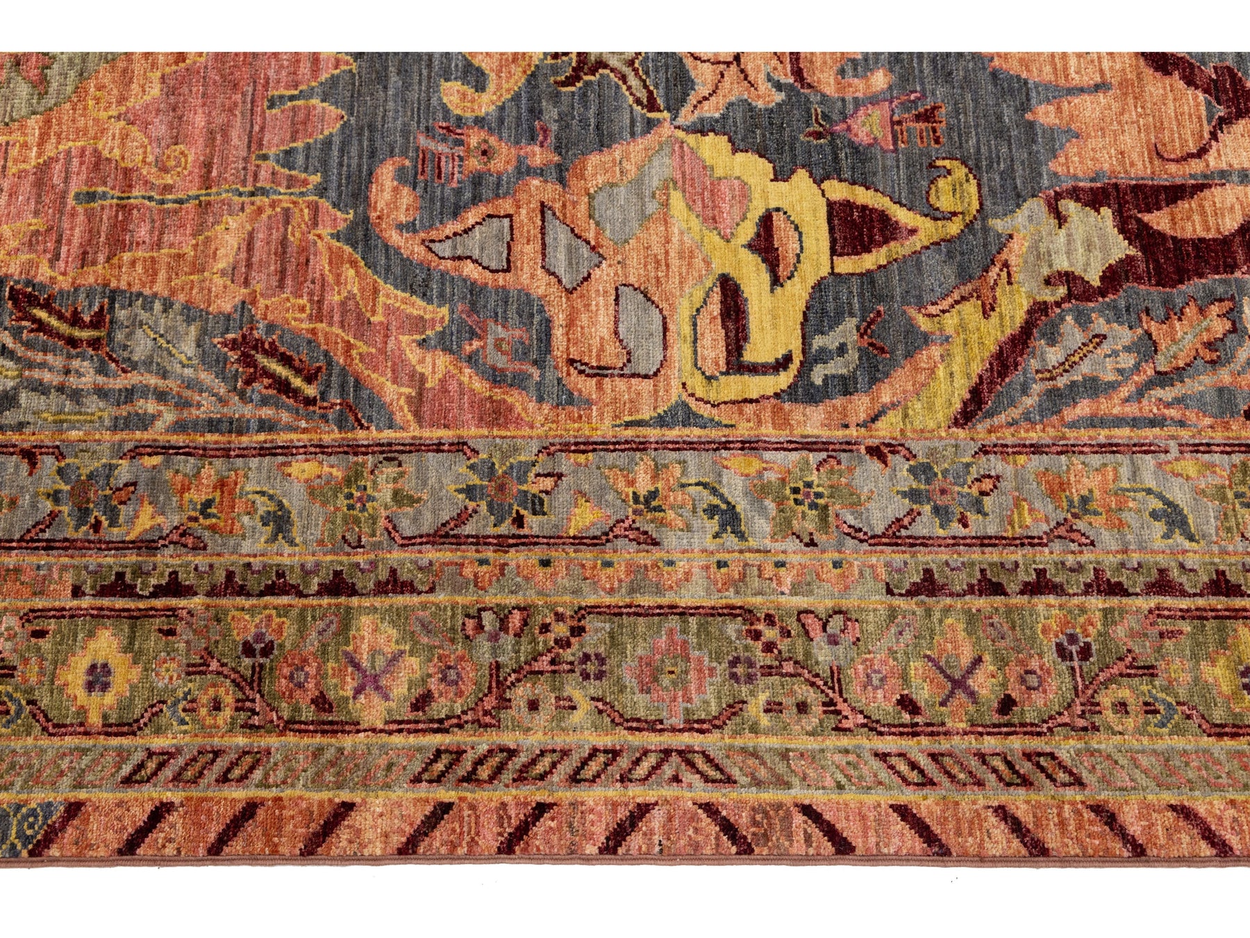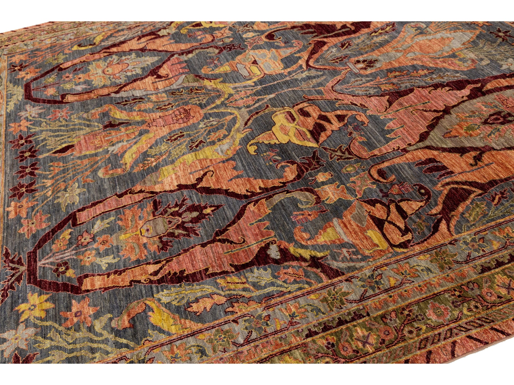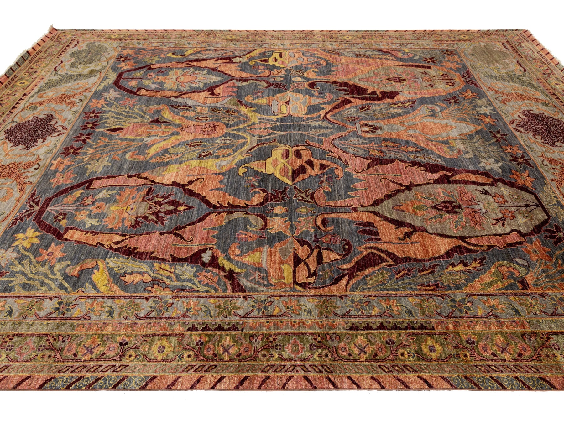 Inspired by classic Persian Bidjar designs, this hand-knotted wool rug features a richly saturated palette of red, navy, and gold with intricate mirrored floral motifs. Its heavy weave and bold symmetry offer durability and visual impact, ideal for contemporary interiors seeking heritage craftsmanship. This rug measures: 8'10" x 11'9".