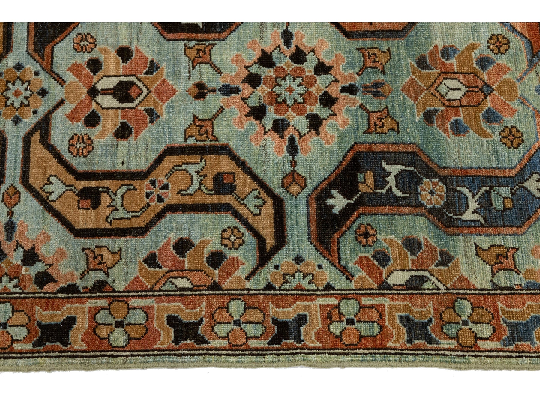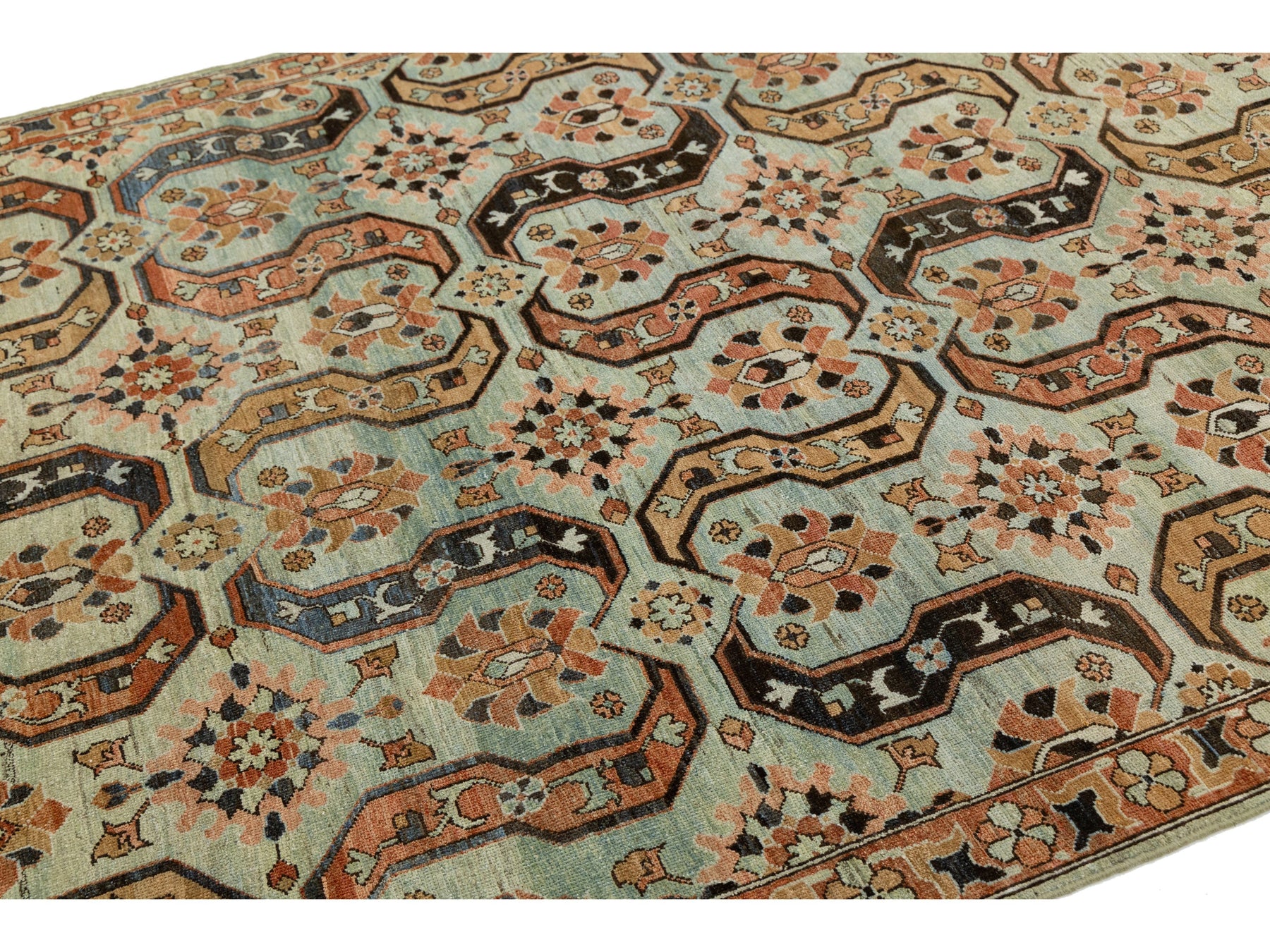 This early 20th century Heriz rug features bold geometric medallions and intricate tribal motifs in rich tones of blue, red, and ivory. Crafted from durable wool, its symmetrical layout and striking design reflect the region’s renowned village weaving tradition—ideal for collectors and interiors seeking timeless Persian artistry and architectural elegance. This rug measures 6'0" x 7'7".