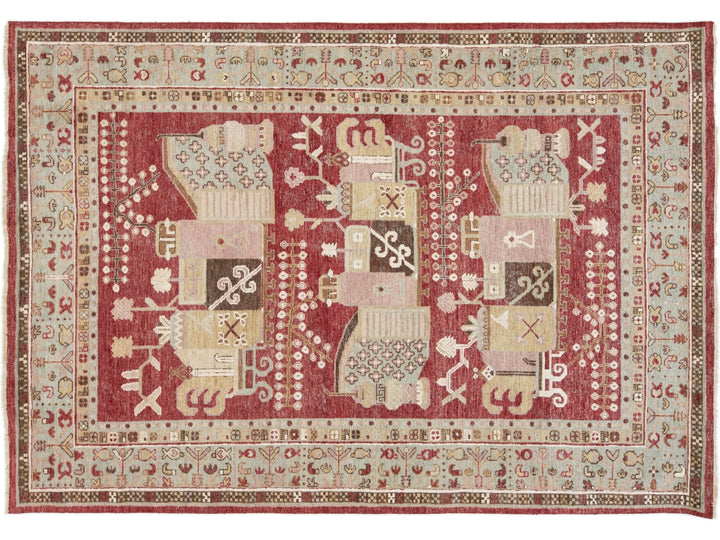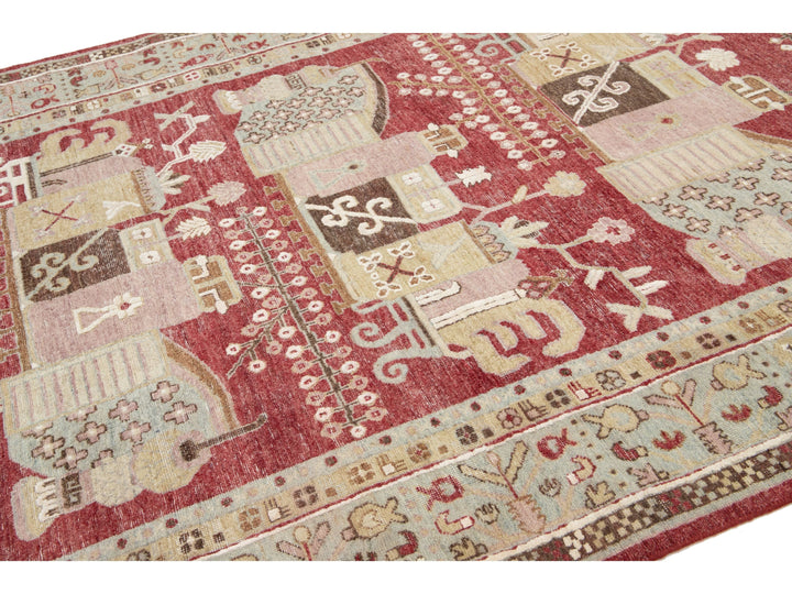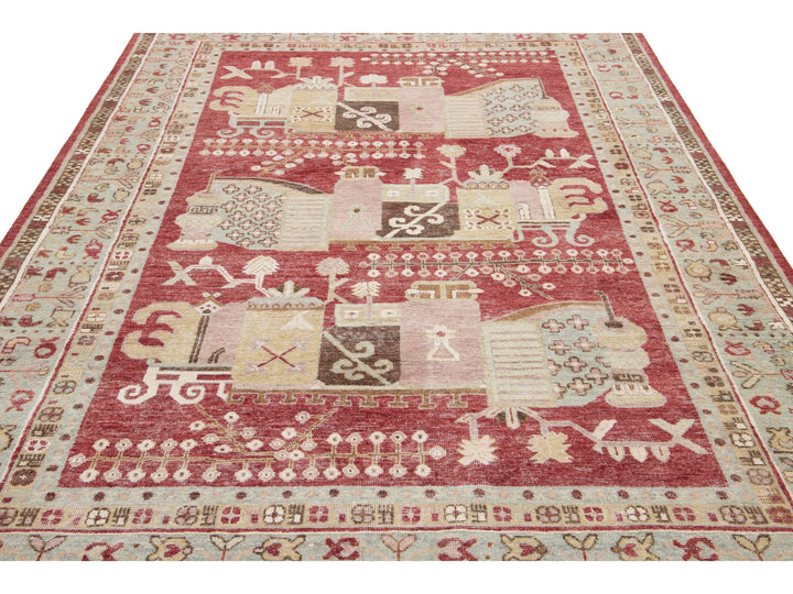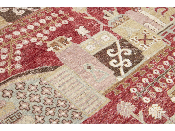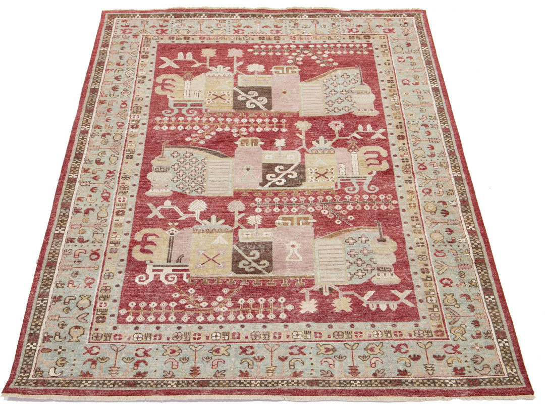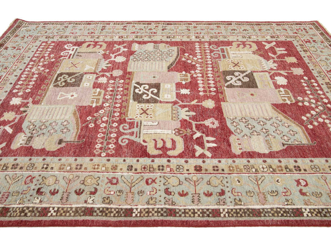Apadana's Artisan Line offers a reimagined take on antique rugs, providing an elegant way to infuse a striking antique aesthetic into any space. Each rug in this collection is uniquely crafted, transforming the traditional appearance of antique rugs. Every piece from our Artisan line is meticulously handwoven. This custom Samarkand-style rug showcases a stunning all-over design against a rich red field. This rug measures 7' x 10'