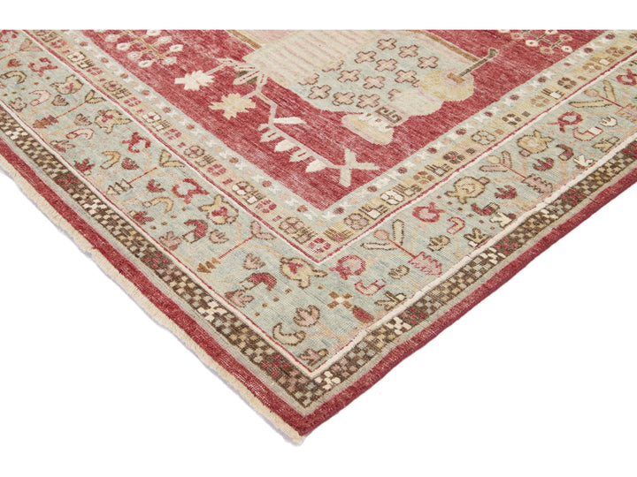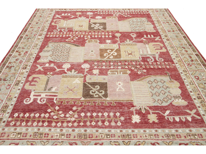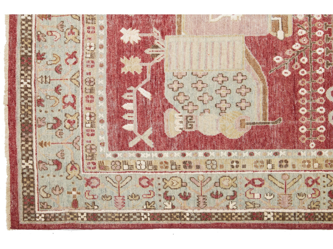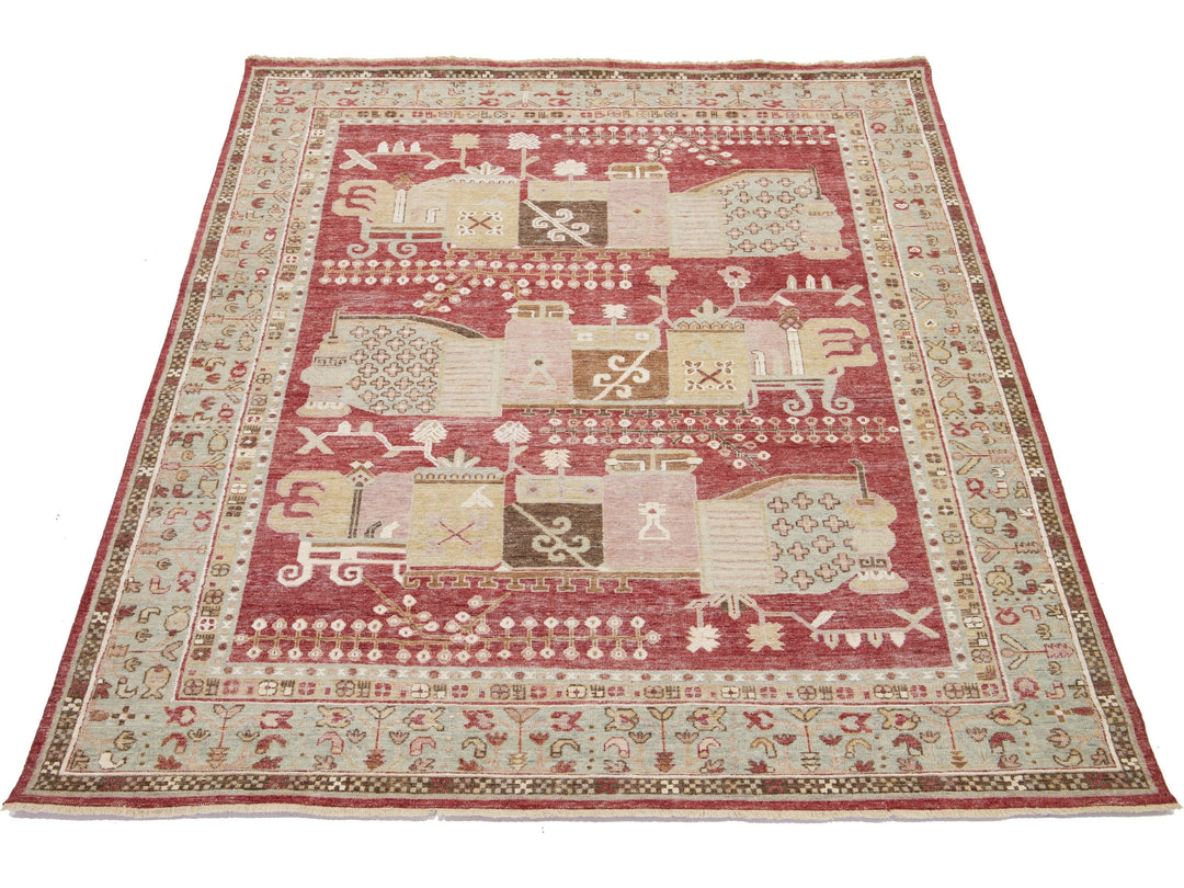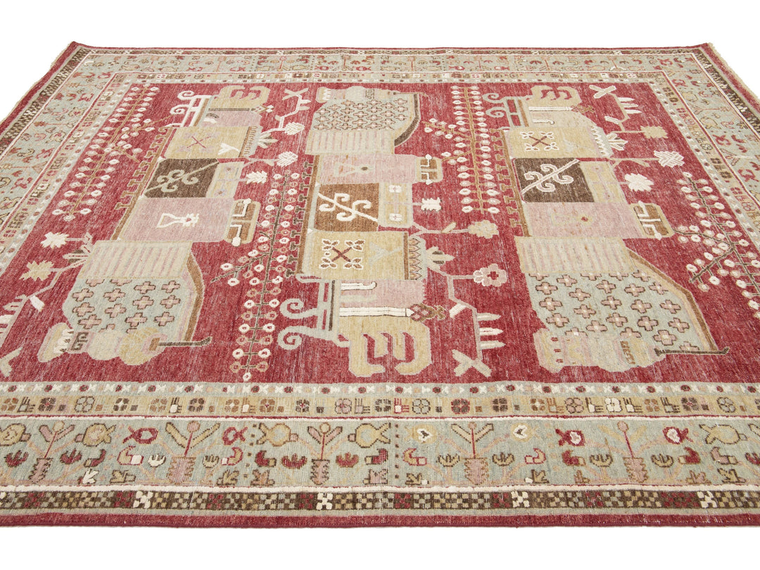 Apadana's Artisan Line offers a reimagined take on antique rugs, providing an elegant way to infuse a striking antique aesthetic into any space. Each rug in this collection is uniquely crafted, transforming the traditional appearance of antique rugs. Every piece from our Artisan line is meticulously handwoven. This custom Samarkand-style rug showcases a stunning all-over design against a rich red field. This rug measures 7'11" x 10'2".
