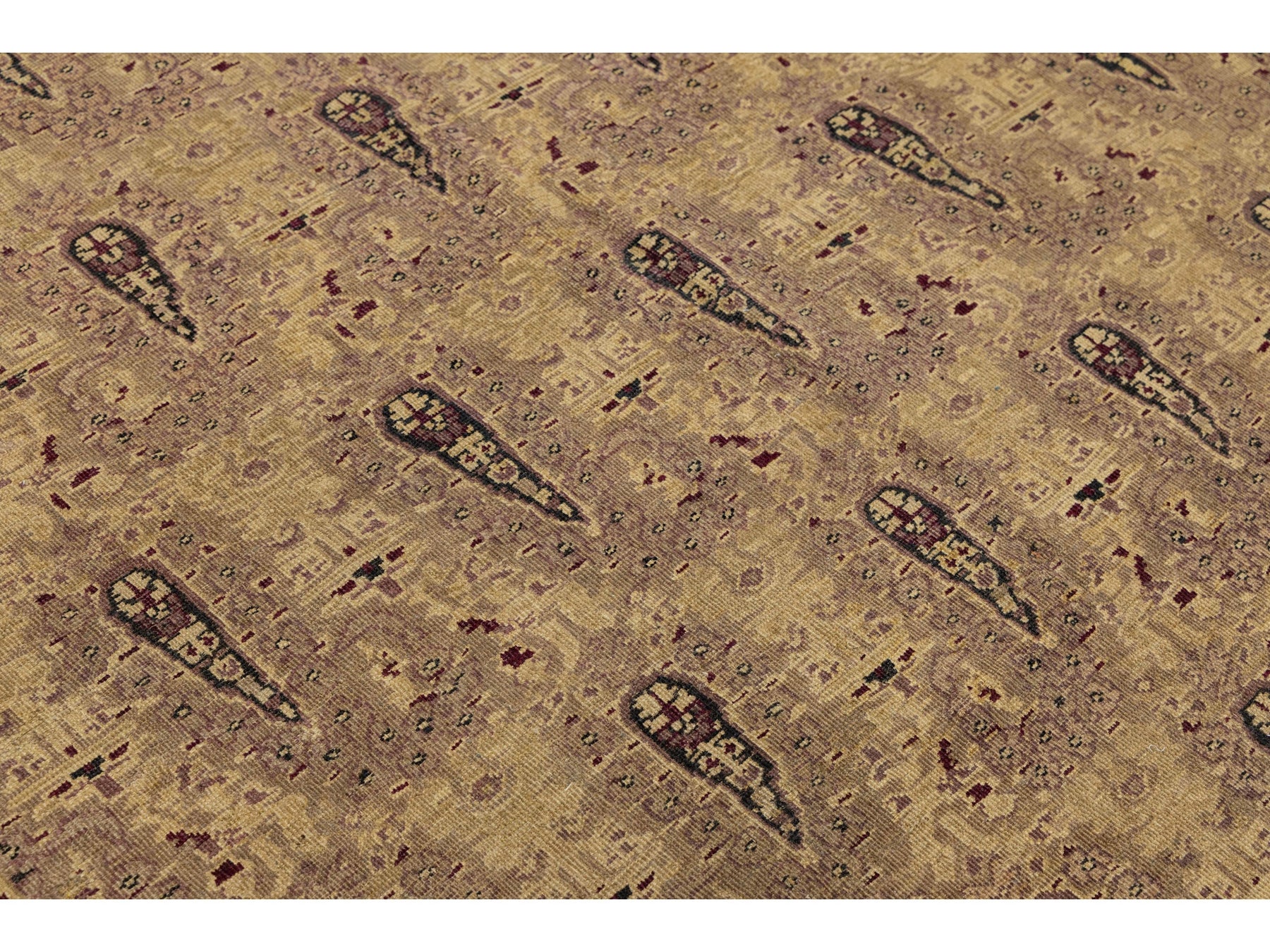 This stunning Antique Amritsar Rug is a classic example of craftsmanship. Featuring a sophisticated earth-toned palette, muted tones of antique gold, sand, and terracotta, accented by deep madder red and espresso outlines in the borders, and a rhythmic, all-over pattern, this piece seamlessly blends traditional Mughal-inspired design with a decorative aesthetic that complements both period and contemporary interiors. This rug measures 8'2 x 10'9".