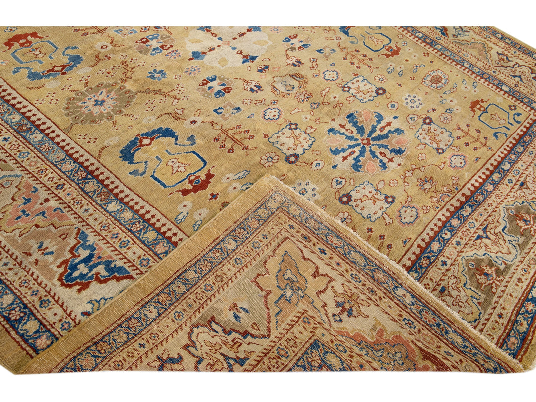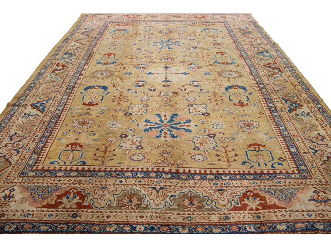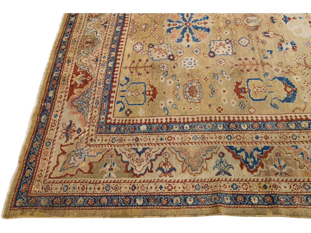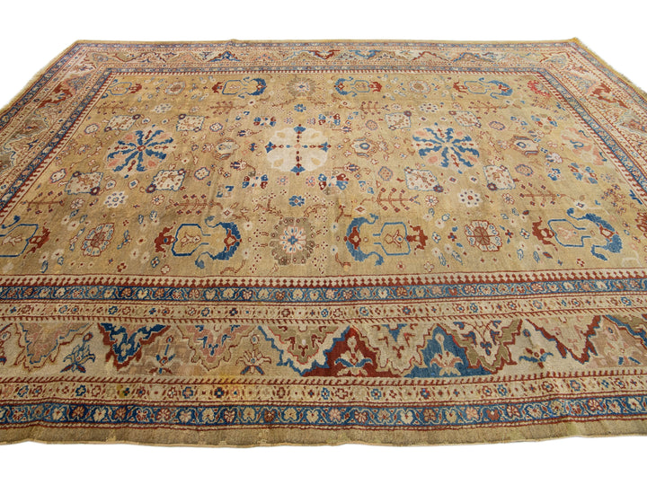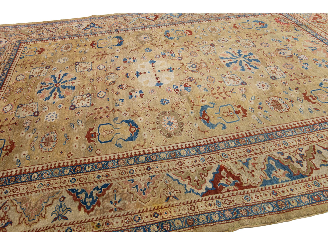 19th Century Sultanabad Beige-Tan Handmade Designed Wool Rug