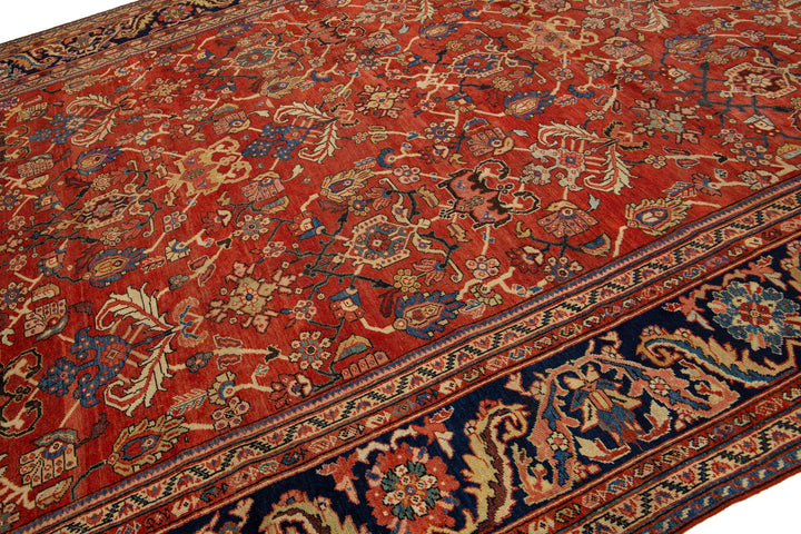 This 1890s antique Sultanabad wool rug is a beautiful hand-knotted piece featuring a red field. It showcases multicolor accents in an all-over floral design, characteristic of Persian rugs. The enduring quality of this classic rug design is highlighted by its strong wool weave, achieved through meticulous hand-knotting. With its timeless palette, this rug is built to withstand the test of time. This rug measures 10'6" x 15'1".