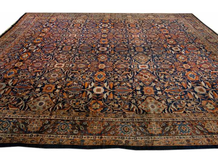 Oversize Antique Sultanabad Multicolor Handmade Allover Floral Persian Wool Rug